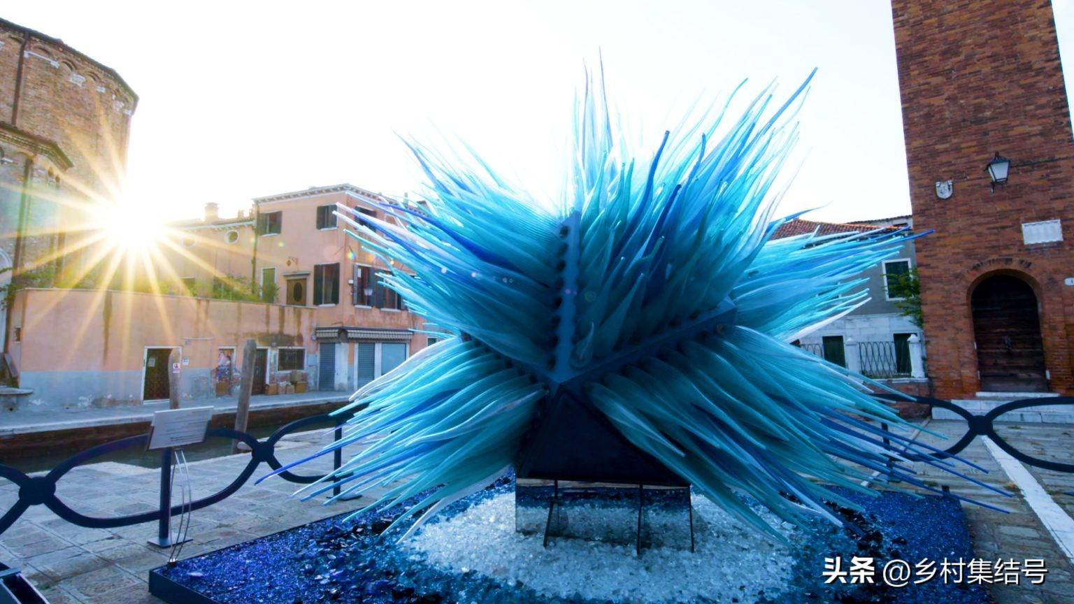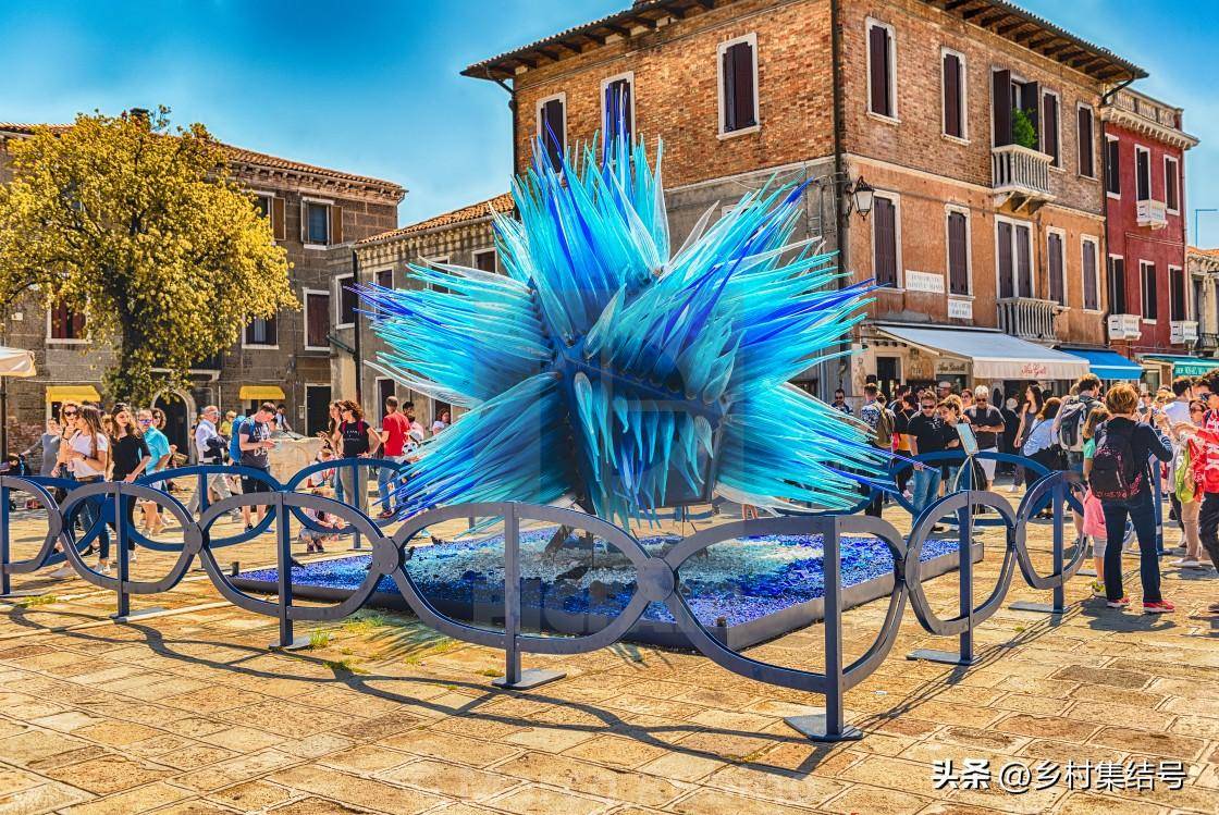 从威尼斯的水上巴士走下,映入眼帘的就是一个巨大的玻璃制成的蓝色雕塑,它是小镇的标志性雕塑,矗立在小镇的中心。走在小镇的街头小巷,到处可见许多有趣的玻璃装置艺术,有挂着玻璃花的树木,有造型各异的玻璃雕塑,将小镇装扮的五彩斑斓。