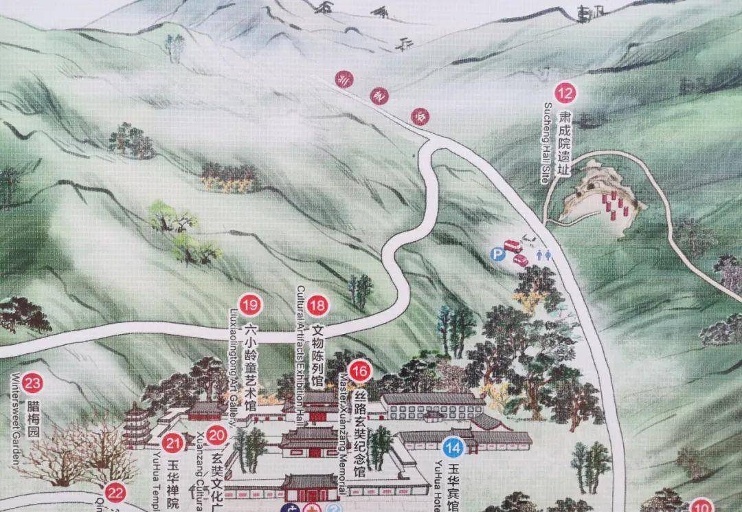 玄奘纪念馆和肃成院遗址,郭玉沟石窟暂未开放。景区内还有村庄,虽然道路修建很好,还是需要电瓶车带你参观游览。简陋的售票窗口外,是整齐的停车场。