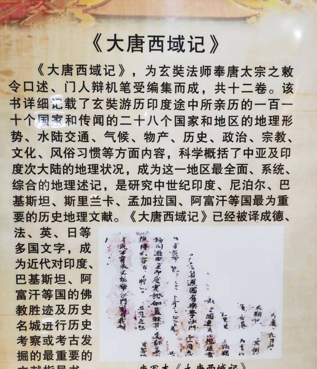 贞观十九年三月,玄奘从洛阳返长安弘福寺,奉旨设译经院,并敕令12人助译。同年五月开始译经,第二年即在边译经边口述中,完成《大唐西域记》12卷,由辩机记录著成,全面记载了他游学异国的所见所闻。