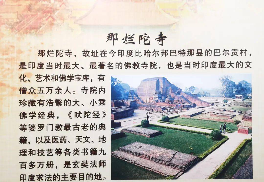 玄奘历四年行程,于贞观七年(公元633年)到达那烂陀寺,参访那烂陀寺拜戒贤长老为师,陈述西行之愿,备受嘉许优待,列为“十大德”之一。玄奘在那烂陀参学五年,遍游五印度,最后又折回那烂陀寺。玄奘已融会三乘,写了《会宗论》三千颂,得到戒贤大师的嘉许。当返回那烂陀寺时,已位居这座佛教最高学府的主讲,仅次于恩师戒贤。
