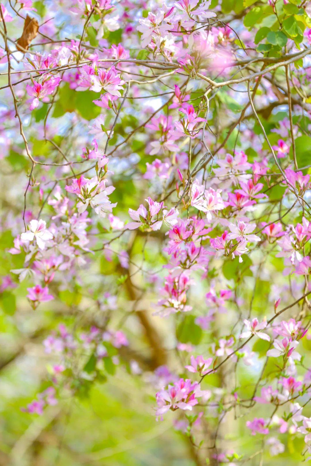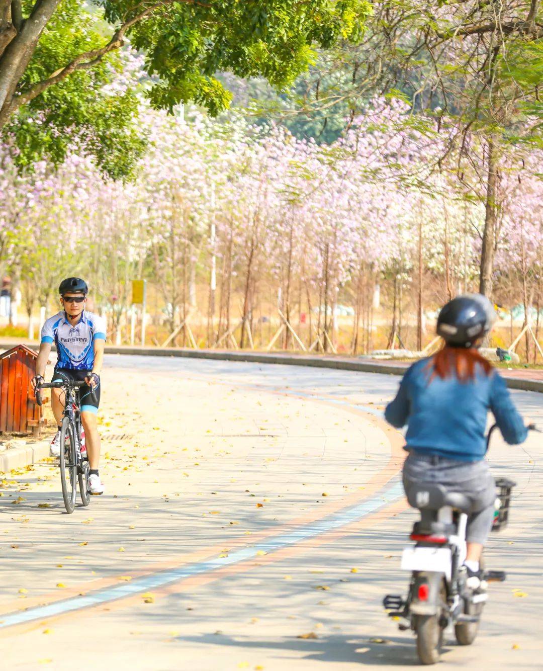 这里的绿道被一条蜿蜒绵长的花海包围,一整片春意盎然的粉色,就好像闯进了影片中的动画世界,浪漫得让人沉醉其中。