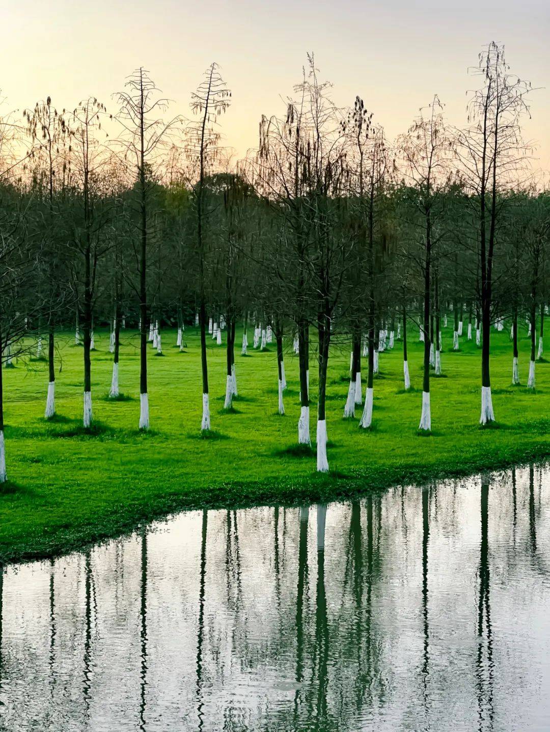 不仅有花海绿道,还可以在这里看日出日落。绿树环湖花草相间,幸运时还能看到白鹭齐飞,真是踏青一大趣事。