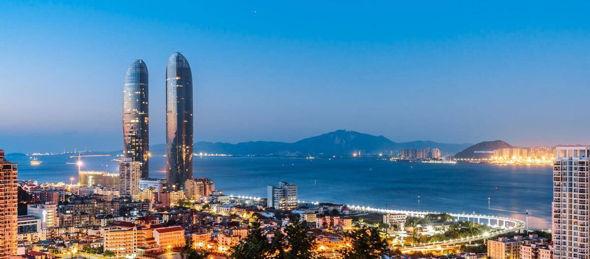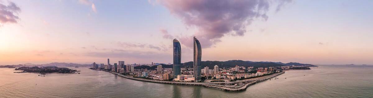 厦门双子塔系厦门标志性城市景观之一,它是两个独立的塔楼并由裙房相连。独立塔楼外形像两个巨大的山峰,故又名双峰大厦。厦门双子塔高300米左右,总占地面积约为3万平方米,总建筑面积约为33万平方米,是目前厦门封顶的第一高楼,全球最高的多用途式双子塔。