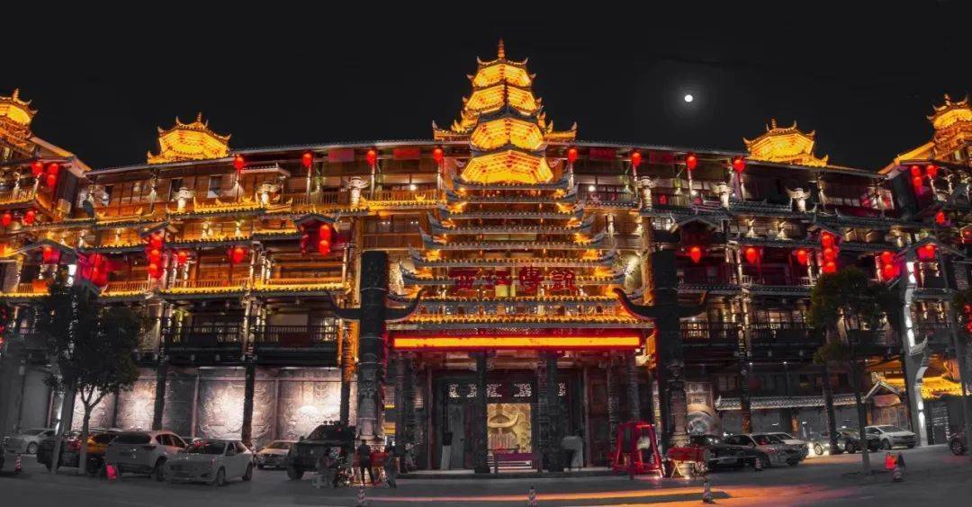 “洞里桃花,仙家芝草,雪后春正取次游。亲曾见,是龙潭白昼,海涌潮头。”西江传说·苗侗餐饮活态博物馆是贵州实践“黔菜出山”战略的标志餐饮品牌。砖基木构的院落建筑在贵阳市鹤立鸡群,气势恢弘的古铜色建筑外观令人叹为观止,亭阁楼檐鳞次栉比,白色层构双塔楼屹立前后呼应,合抱的玄铁图腾灵韵生动。整体上来看,就像把千年以来深山老林的依山苗寨复制到了都市里,在五光十色的都市里展示着苗寨人古老的智慧和传统。西江传说举办“酸汤煮海鲜”新品发布会,开启了贵州酸汤产业的新时代。观察家认为,“酸汤煮海鲜”系列产品延伸了“黔菜出山”战略,是“黔菜出山”战略的回流,可理解为“海鲜入黔、海味入寨”,是“黔菜出山”战略体系开放取得的新成果。