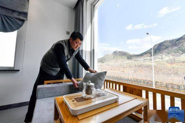 4月6日,在天津市蓟州区下营镇团山子村,民宿经营者收拾房间准备迎客。