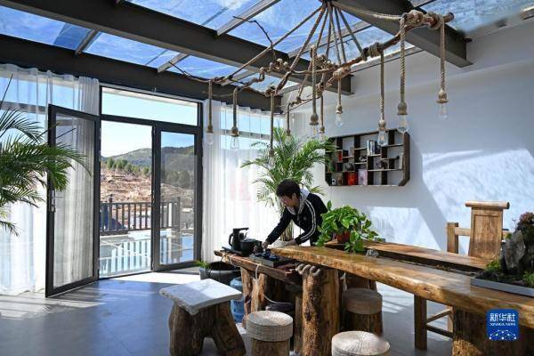 4月7日,天津市蓟州区罗庄子镇二十里铺村一家民宿的负责人在整理茶具。