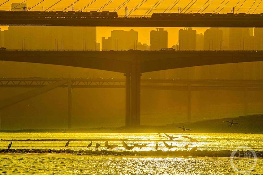 春暖花开之后的江城重庆,两江四岸中的江水中迎来一批新客人——白鹭。翩翩起舞在江水之上,嬉戏在夕阳下的鸟儿们,与桥都、与江城,在城轨的相伴下,构成了一幅最美重庆森态美景,再现了重庆都市美不只是有山城之美、桥都之美、江城之美,还有生态人与自然和谐之美。