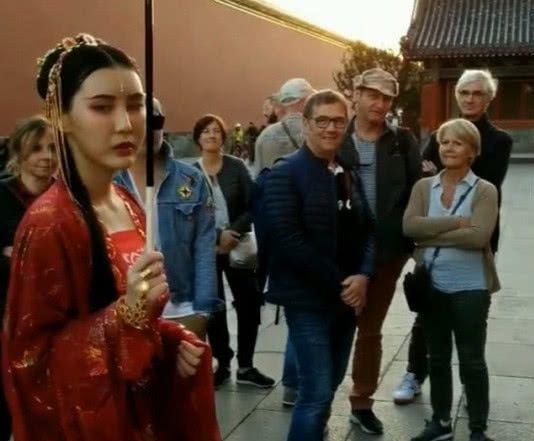 也正是小姐姐的这身打扮,让很多来参观故宫的游客都不禁的停下脚步去看看这个穿着汉服的没人,有的人甚至还会要求和小姐姐拍照,一般人也会像和这么古色天香的美人拍一张合影,毕竟这样子的机会没有了就没有了。不过这位小姐姐也十分的配合,看到游客拿起相机拍照,也是跟着一起合照留念了,不过身旁的老外眼神就不对劲了,原来是看到下半身“打榜”却笑了。