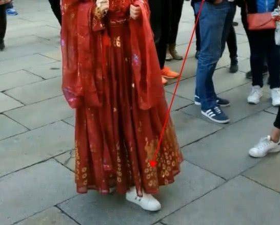 虽然上身看着十分的美丽,十分有从古代中来的感觉,但是脚上的一双小白鞋立马就把人拉回了现实。小白鞋虽然说是百搭鞋,但是搭汉服也是有点奇怪的,而且让整体少了许多意境。这些老外看着这样搭配觉得有点搞笑了,不知情还以为是中西结合风格呢。正常来说,穿上汉朝的鞋子才完美的诠释汉朝美人的样子了,这双小白鞋多多少少还是有点煞风景的,可别被外国人看笑话了。