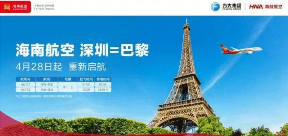 近日,深圳机场和海南航空宣布,4月28日起,深圳恢复直飞巴黎的直飞客运航线。这是2023年夏秋航季深圳机场恢复的第二条欧洲客运航线。
