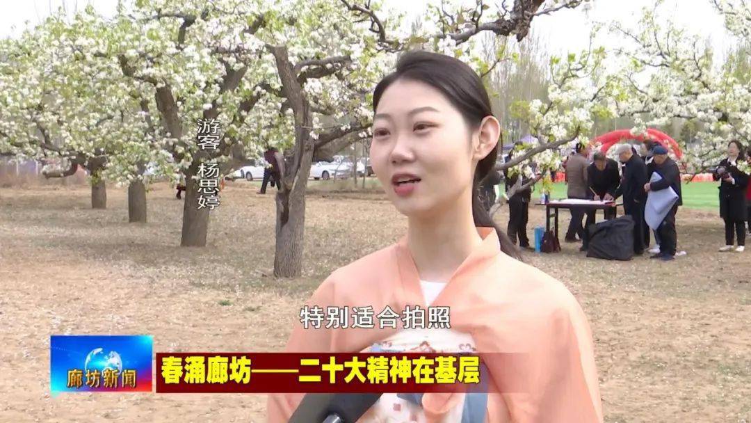 春风送暖,百花盛开,又到了赏花踏青的好时节。固安县以花为媒,举行梨花文化旅游节,促进旅游综合消费能级提升,激发文旅产业发展新活力。“春涌廊坊——二十大精神在基层”大型融媒采访行,今天走进固安县梨花文化旅游节,欣赏万亩梨园的美丽景色,感受固安县文旅产业发展的勃勃生机。