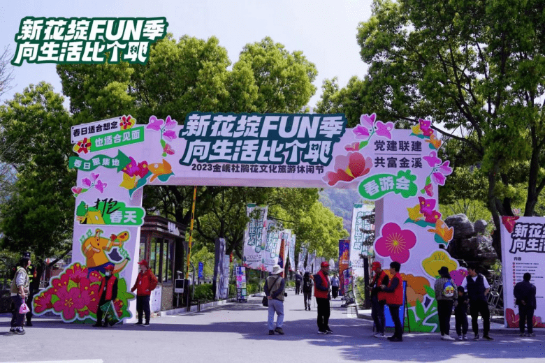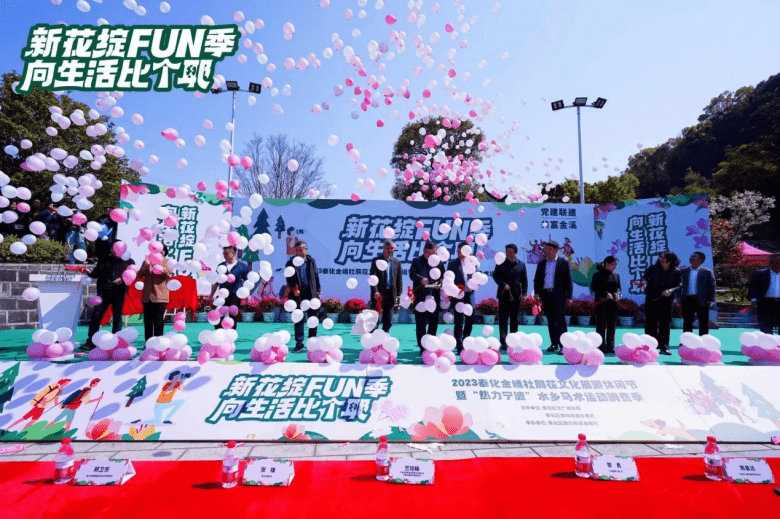 4月8日下午,2023奉化金峨杜鹃花文化旅游休闲节“新花绽fun季 向生活比个耶”暨“热力宁波”水乡马术运动消费季在奉化区金峨村隆重开幕。