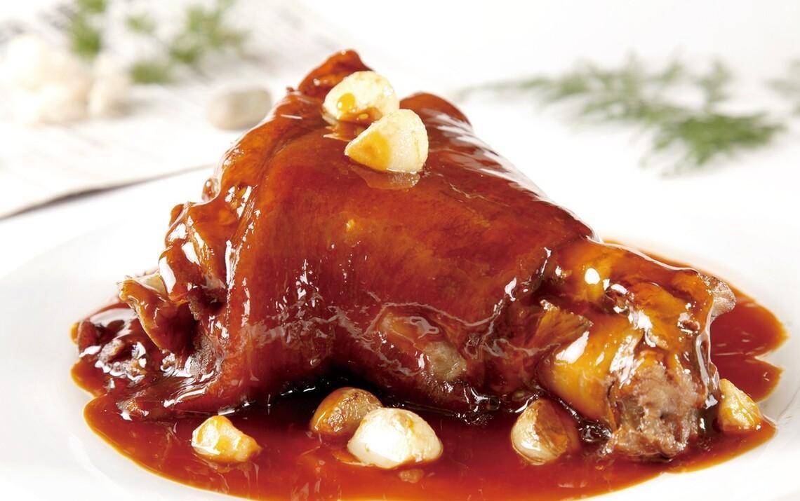 无棣县小泊头镇文家村,出产的泊头肘子是无棣的知名食品,选用皮薄肉嫩的猪肘子,全要前肘,前肘带蹄筋口感丰富,辅以多种原料,经洗净、焯水、过油后,文火慢炖水、肉质鲜嫩,观之诱人生津,品之酥烂清香,来个馒头来个大蒜,这肉的口感就出来了。