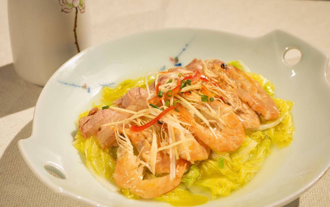 无棣海产品丰富,当地海水质量高,产品污染小,出产的盐田虾,虾青素的含量高,虾肉纤维更粗大,肉质细嫩。山东大白菜遇到大虾,是奇妙而美好的组合。洗净的大虾放在油锅里,来点姜丝就够了,炒到变色,加入白菜,炒白菜至软,虾香、白菜鲜从锅中溢出,这菜就做好了,不用放盐,盐田虾自带咸度。虾的做法千万种,这最朴实做法最动人。