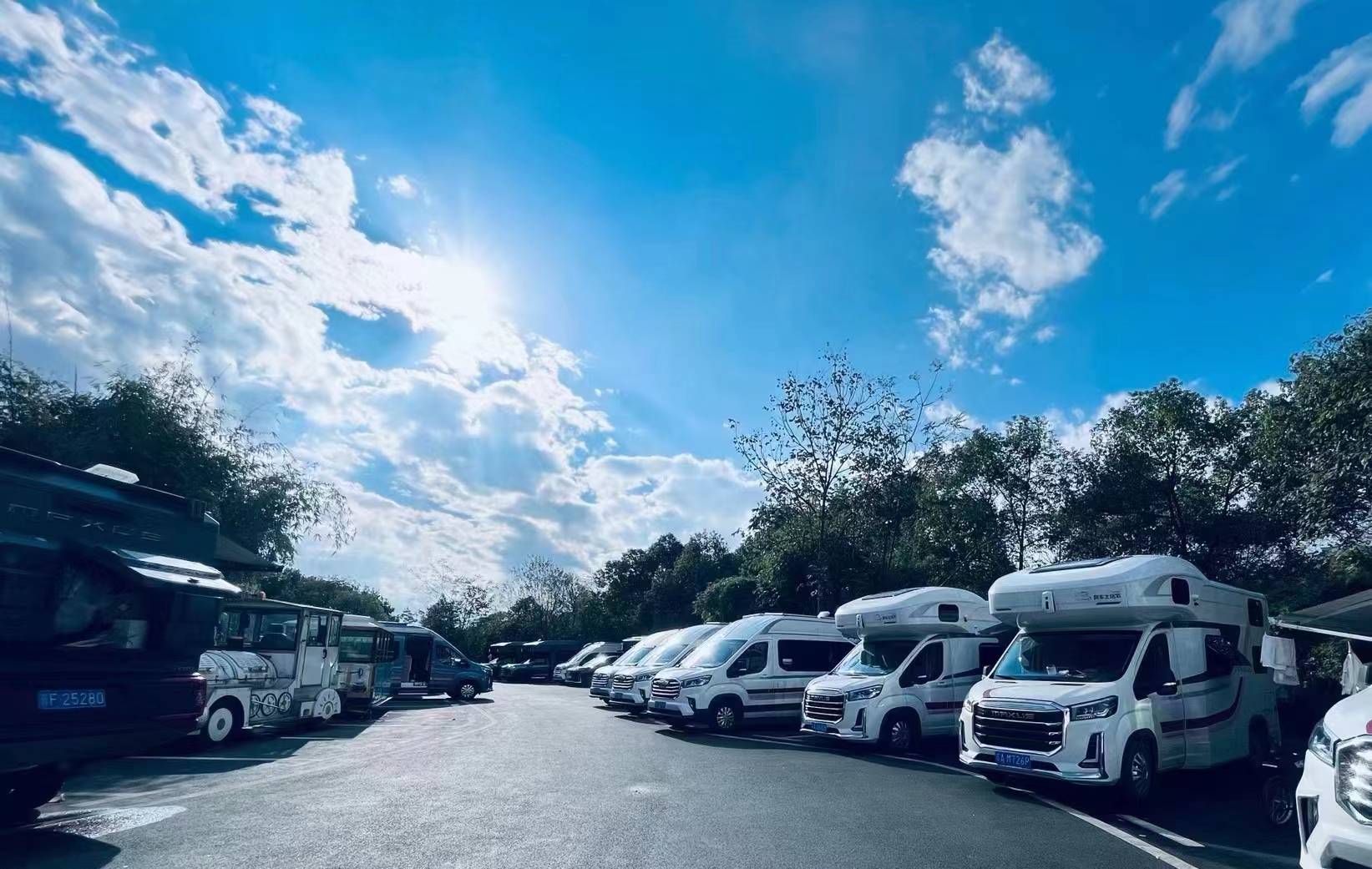 来自全国各地70余辆房车齐聚花溪三叶草露营基地,参与此次发车仪式