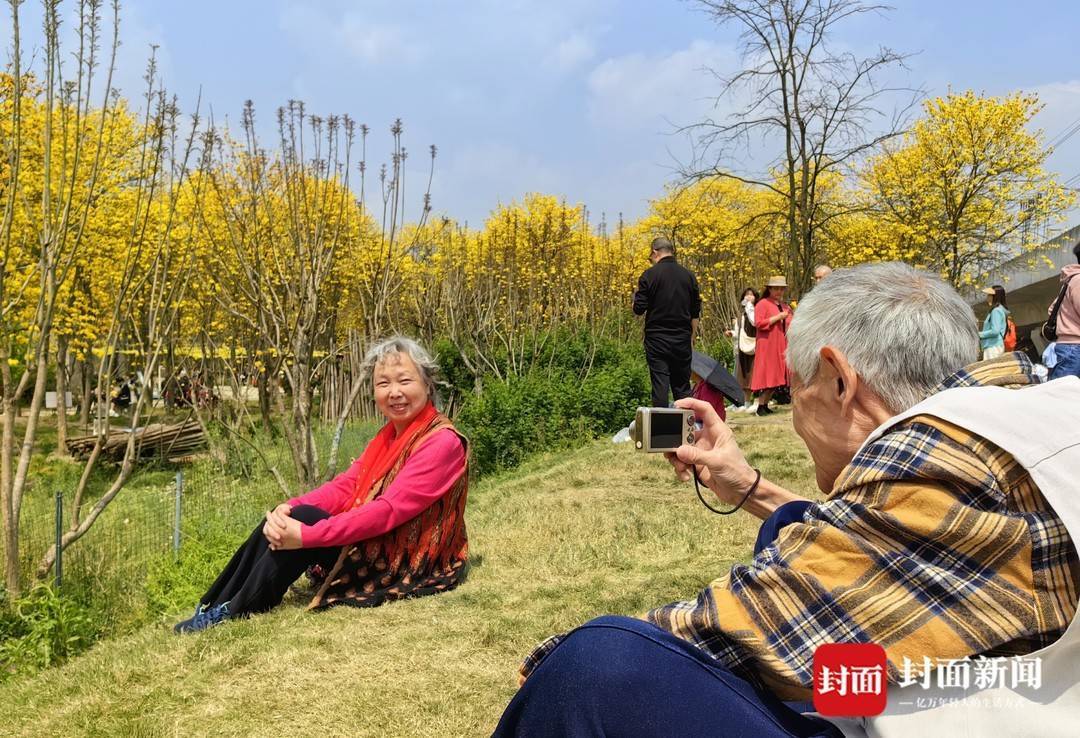 “快!给我拍一张,这里的花太好看了”。4月9日,春光明媚的周日,正是外出踏青的好时机,家住成华区府青路的赵爷爷和老伴坐上地铁去踏青看花。