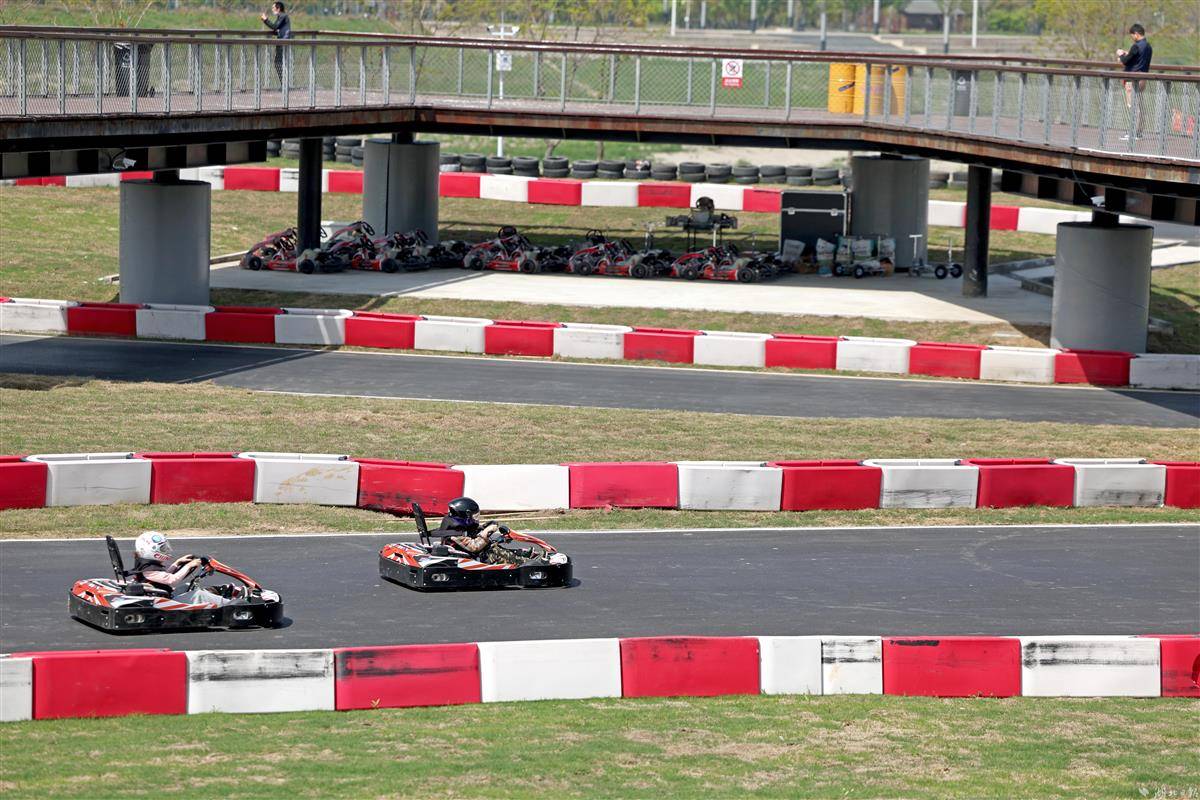 4月9日,市民驾驶卡丁车在汉江边体验速度与激情。近日,位于武汉市硚口区汉江湾体育公园4期的汉江湾体育公园青少年汽模基地正式对外开放,全程1038米,呈“战斧”型赛道,吸引了不少市民游客前来体验。近年来,硚口区加快建设汉江湾生态活力新城,汉江湾体育公园区域内足球、篮球、羽毛球、网球、航模、汽模等体育项目类型不断丰富,体育设施逐步完善,成为武汉最大体育主题生态公园。(湖北日报全媒记者 倪娜 摄)
