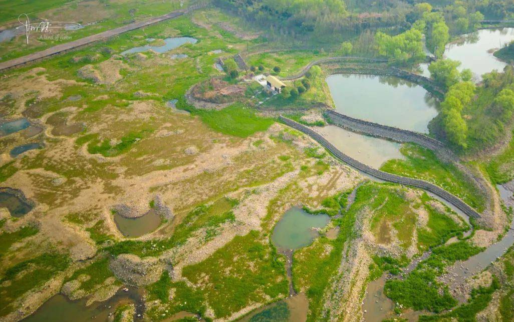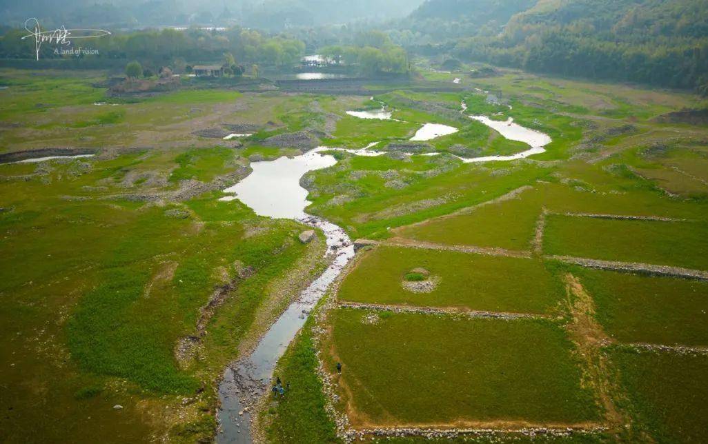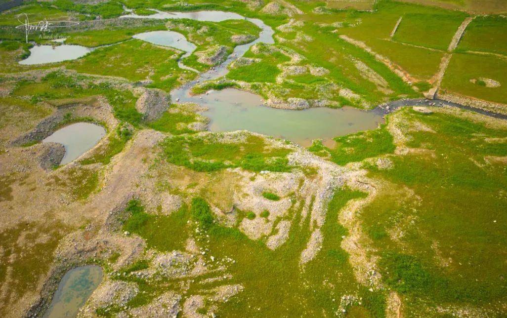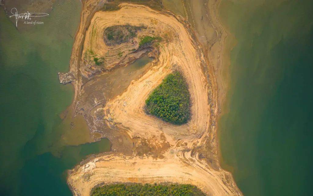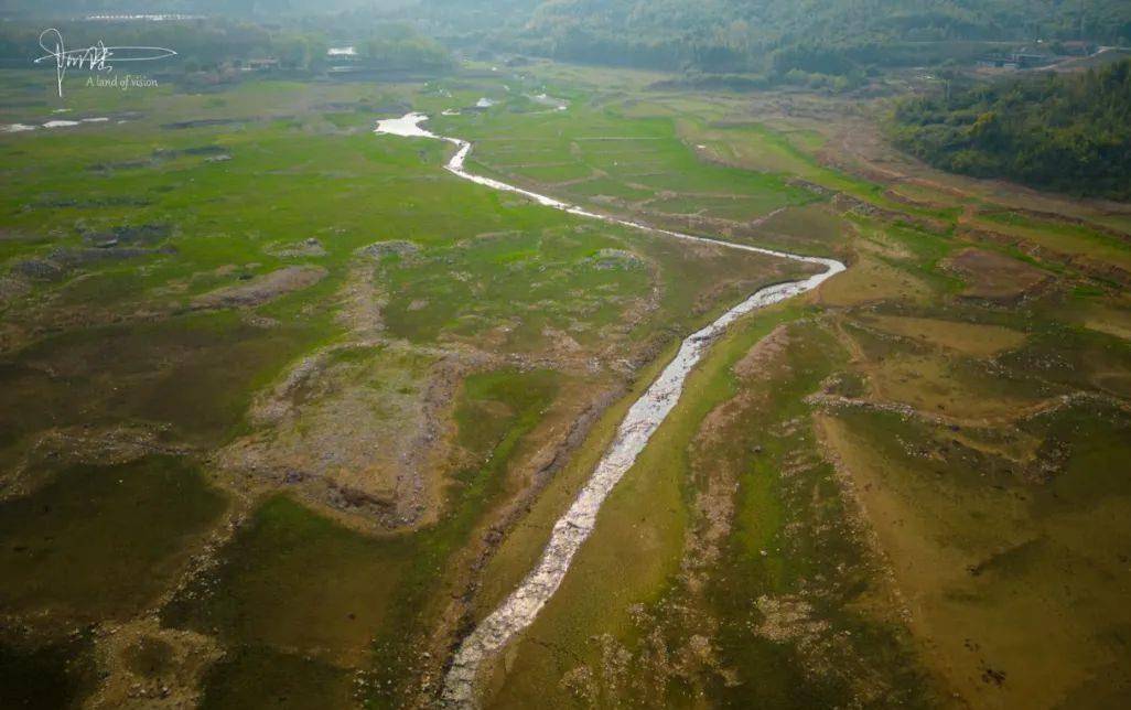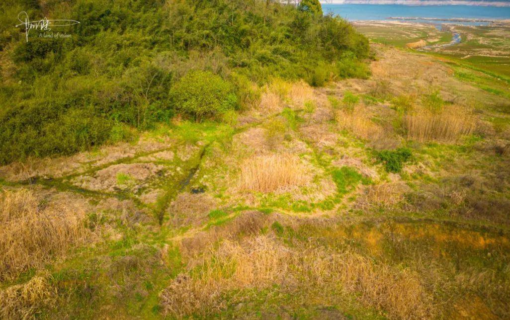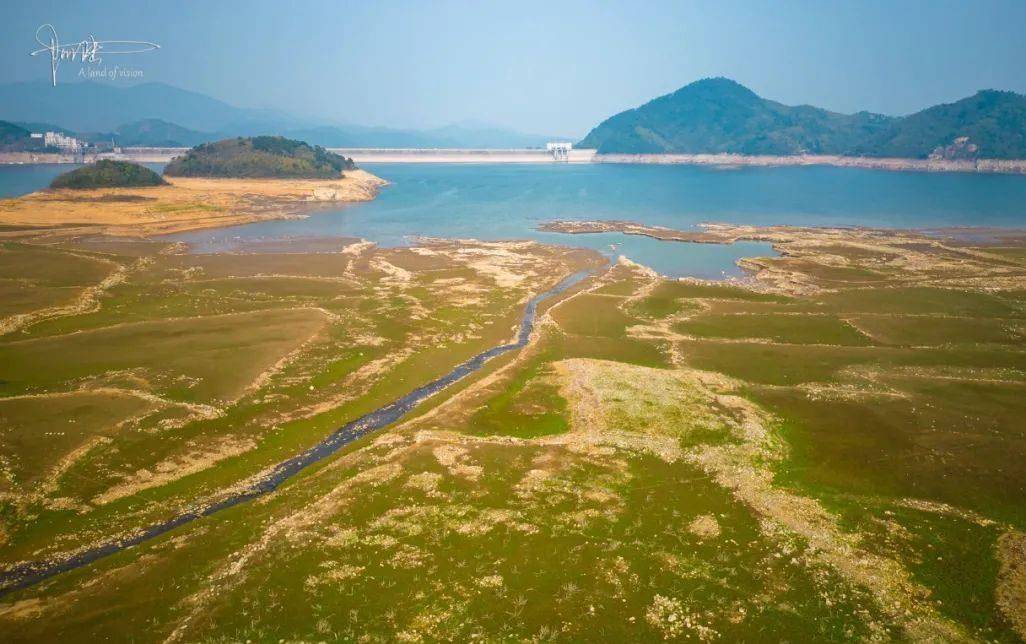 航拍视角下,因为现在的蓄水量还略有不足,所以有大片的草原裸露出来“待君采撷”。如果机缘巧合能找到我航拍时发现的这处“凉亭”并且这那里安营扎寨,个人觉得会非常安逸,因为那里既“僻静”,又干净整洁,自然山水还近在眼前。