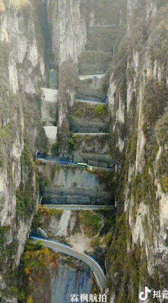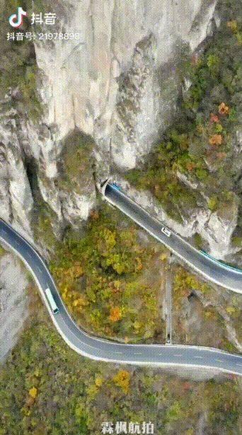 ©抖音 霖枫【记录中国】从高处鸟瞰,这些公路隧洞呈螺旋上升趋势,又穿过山体隐藏在悬崖峭壁间,像极了“太行山的鞋带儿”;