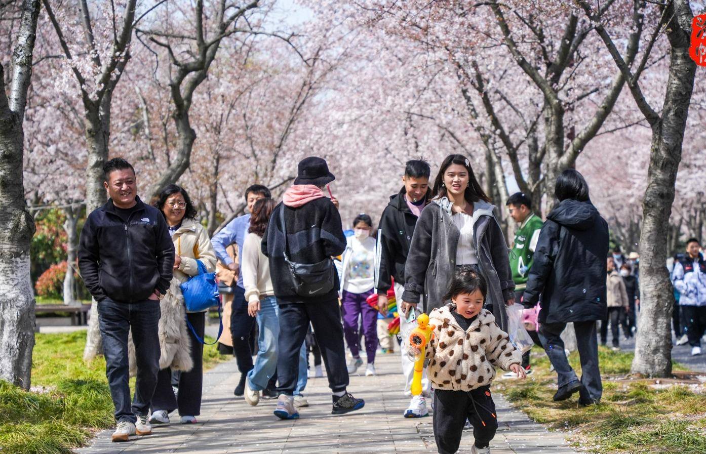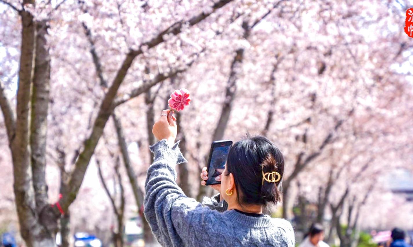 漫步于樱花大道,一株株绽放的樱花映入眼帘,粉的如霞、白的赛雪,微风拂过,花枝摇曳,花瓣飞舞,游客沉醉其中,赏花拍照打卡,让人留连忘返。