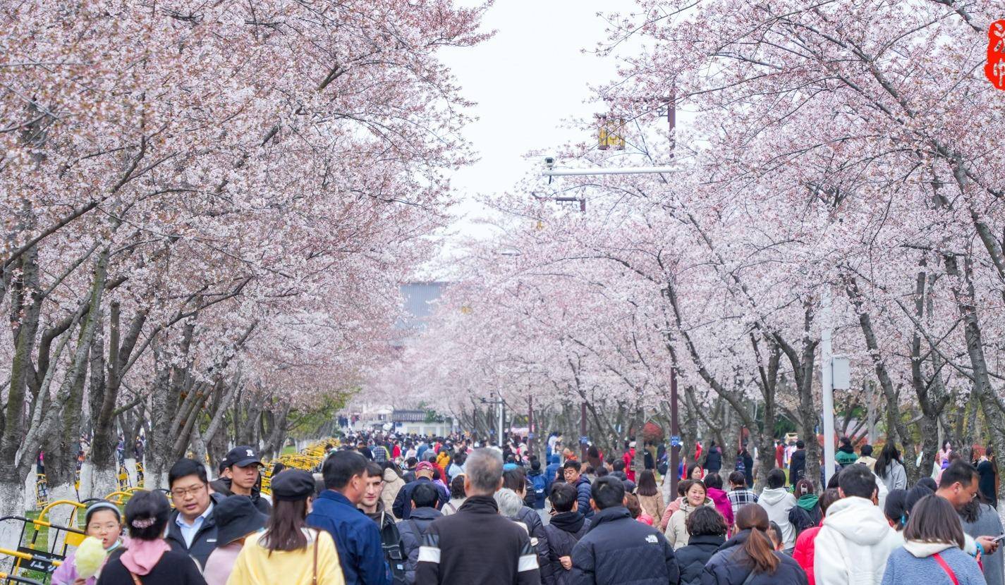 全国的樱花地那么多,我为什么要特别推荐鉴真大道呢?一是因为它的规模很大,盛开时节花繁似锦,如云似霞,极为漂亮,而且当地为了方便游客赏花,还会在盛花期将道路封闭,与重庆封桥封路为游客的情况极为相似。