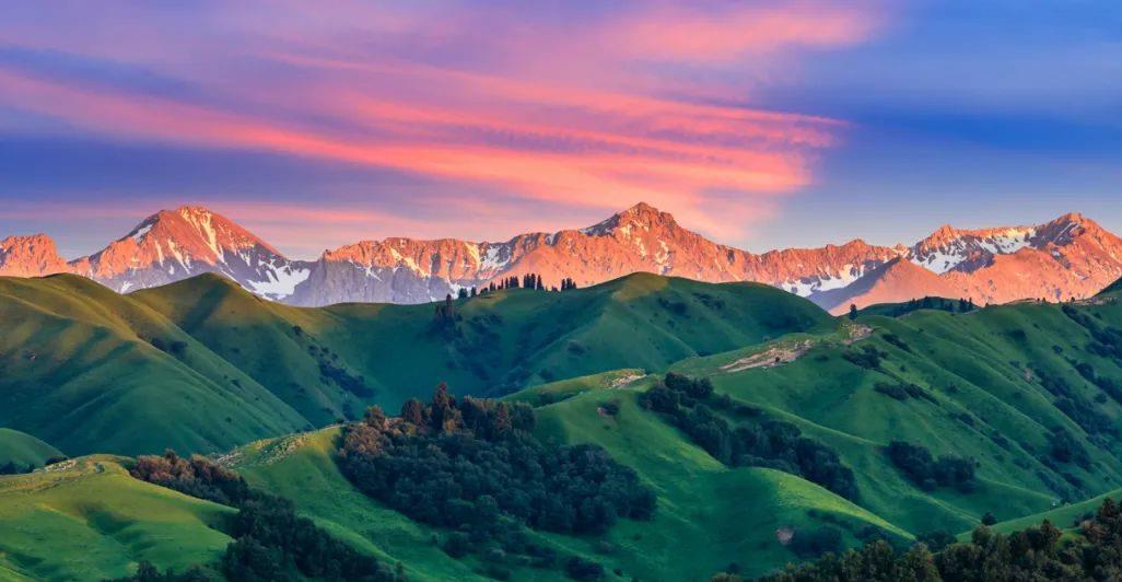 上文在介绍新疆的景区门票时,我只罗列了新疆伊犁以及附近的景点,那便是因为5-8月是新疆伊犁最美的时候。5月中旬开始,伊犁河谷的水草从漫长的冬眠中醒来,变得绿意盎然。处处草长莺飞,山花遍野,牛羊成群,沿着哈萨克族的山路翻越连绵起伏的鲜绿草原,逶迤的雪山迷人眼,蓝天白云触手可及。