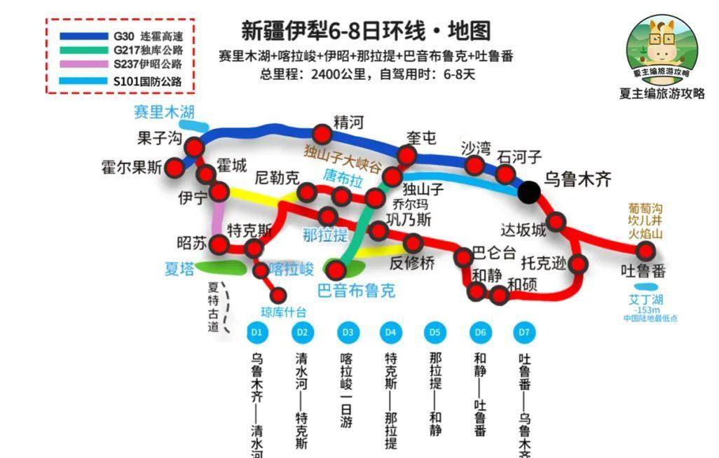 5-8月自驾新疆,【伊犁大环线】是更好的选择,全程2500公里,自驾需6-10天。既可以途经【独库公路、伊昭公路、S101国防公路、G30连霍高速】等景观大道,又可以游玩【赛里木湖、果子沟风景区、夏塔冰川草原、霍城薰衣草、特克斯八卦城、那拉提草原、巴音布鲁克】等景区。