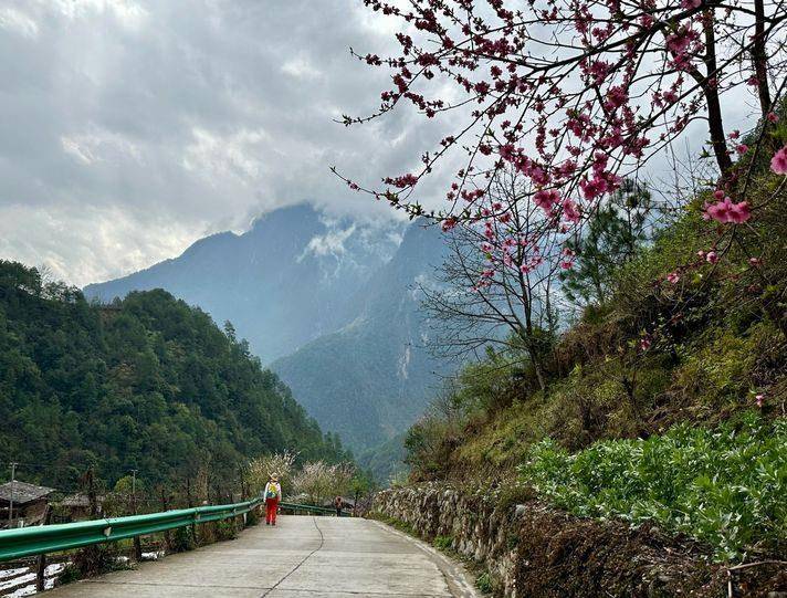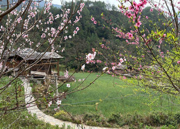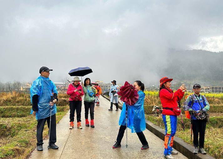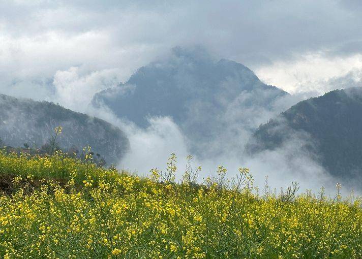 阴雨天行走多有不便,却也有不少美景:梯田、菜花、桃花、村庄、云雾、山峦……层层叠叠、梦幻迷离,甚美。