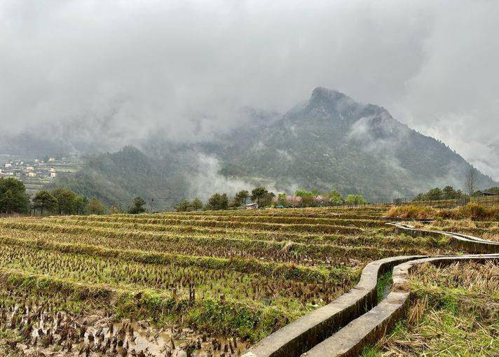 这个季节走过梯田,看到有油菜花开的惊艳、有桃花粉红的浪漫,在云雾升腾的阴雨天里,若隐若现的村庄、群山,构成一幅一幅好看的山水画,行走其间的我们,也变成了画中人。