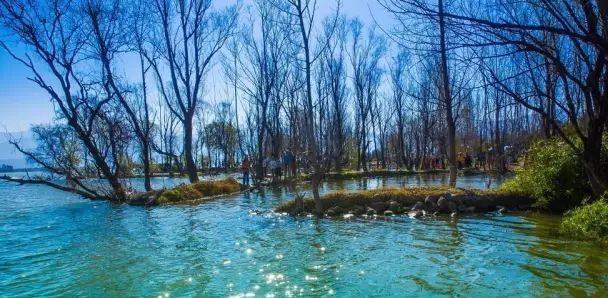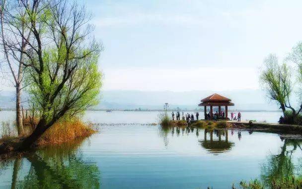 它一向以恬静著称,景色四季各异,春日天光水钯,上下一碧,一片浩翰波光闪耀在苍山碧野之中,“舟行碧波上,人在画中游”,岸边柳眉桃腮,燕语呢喃。