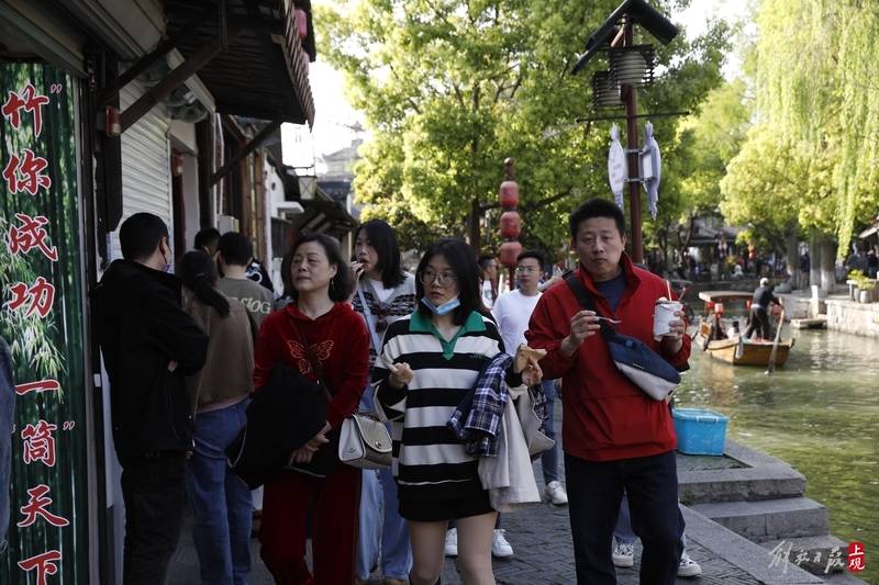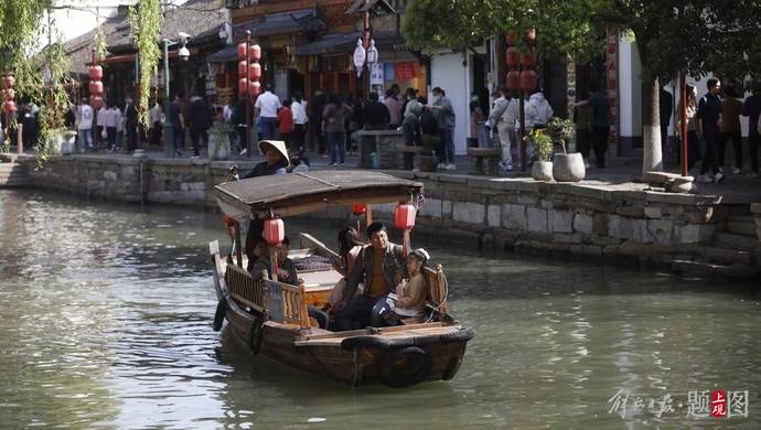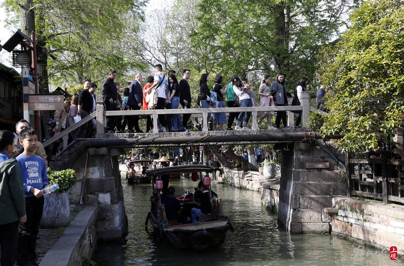 4月9日,清明节后首个周末,朱家角古镇游人如织。市民游客来此畅享漫时光。 乘游船,赏美景,品美食,满目皆景,仿佛人在画中游,感受曼妙春光。