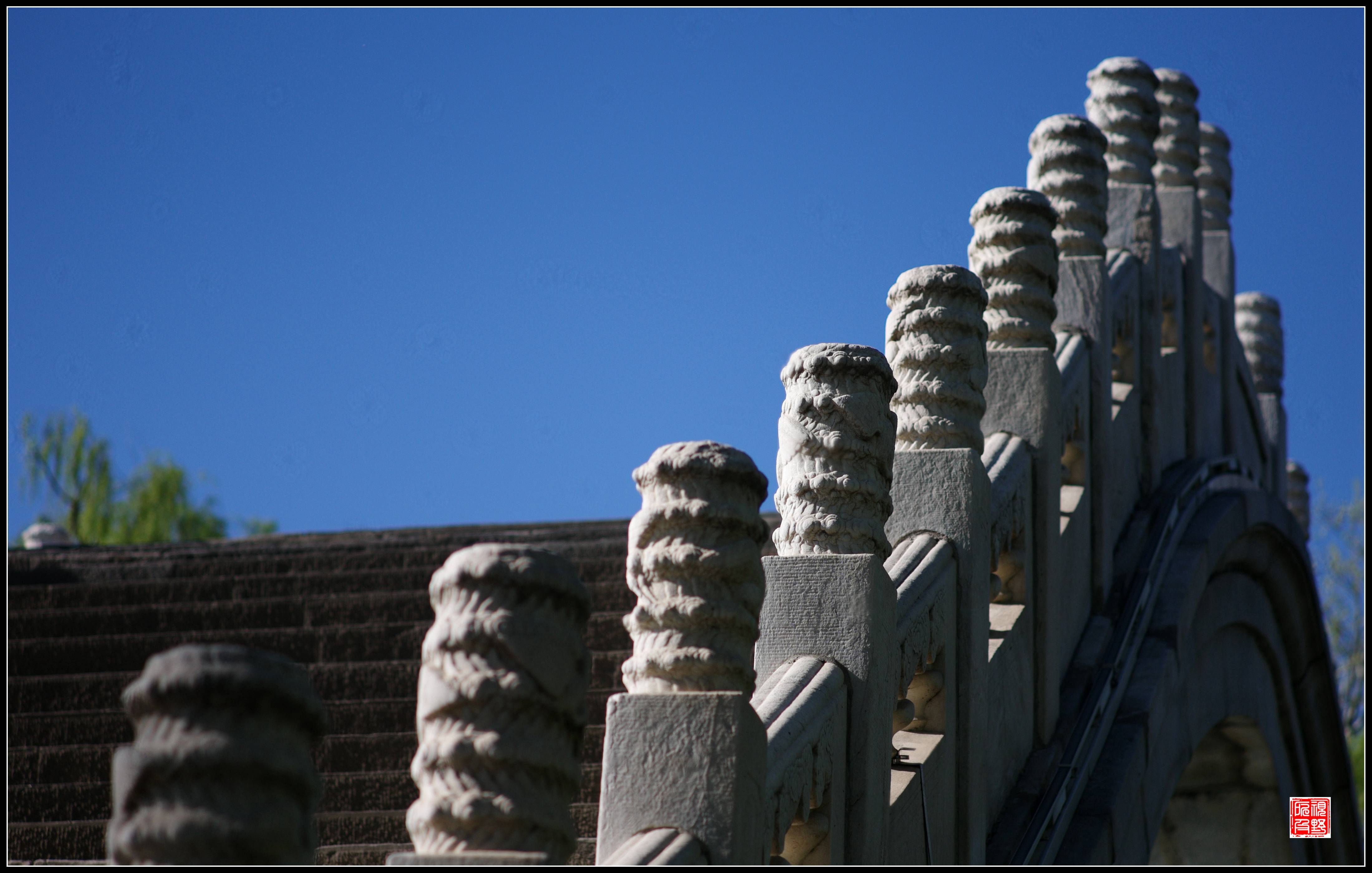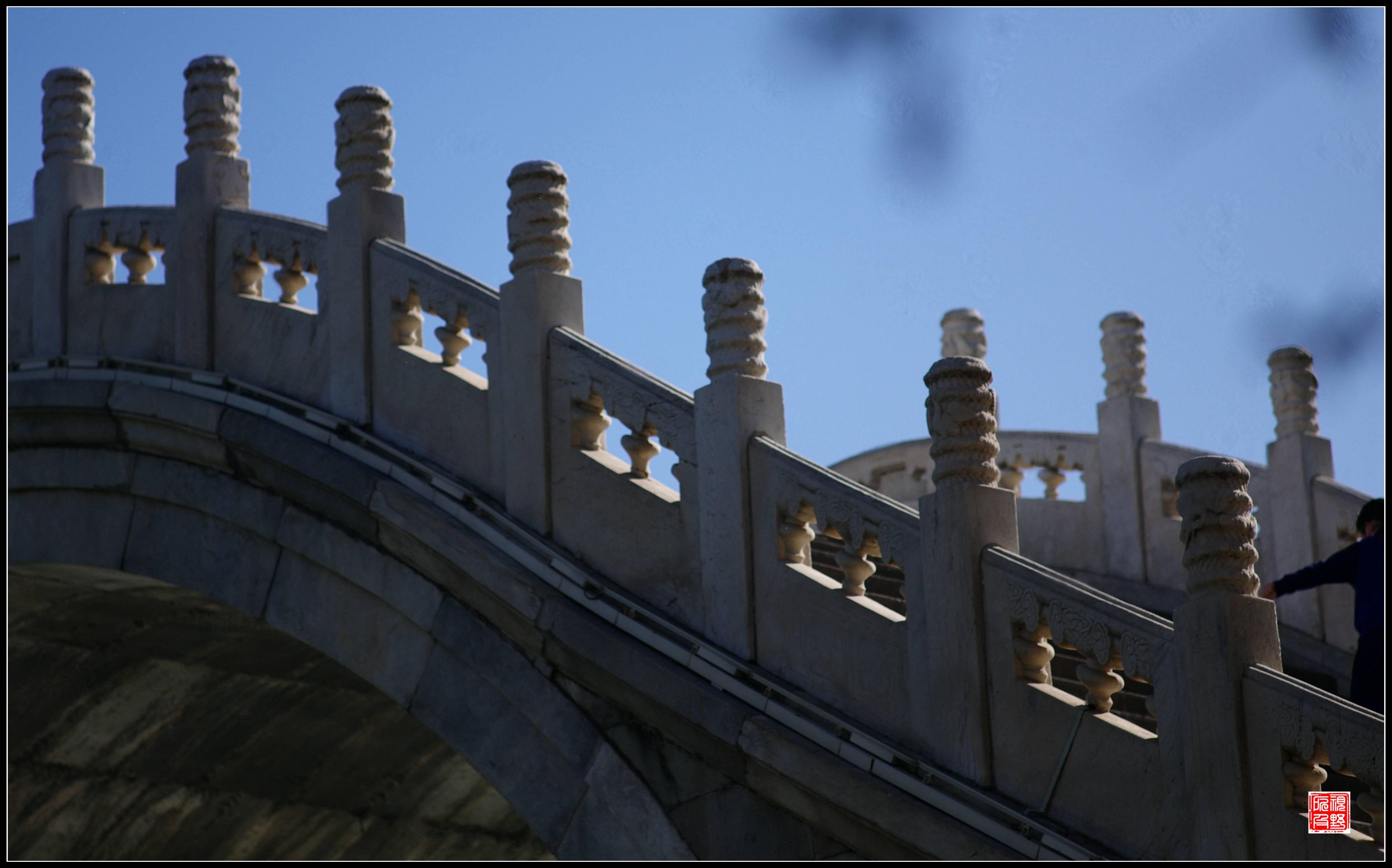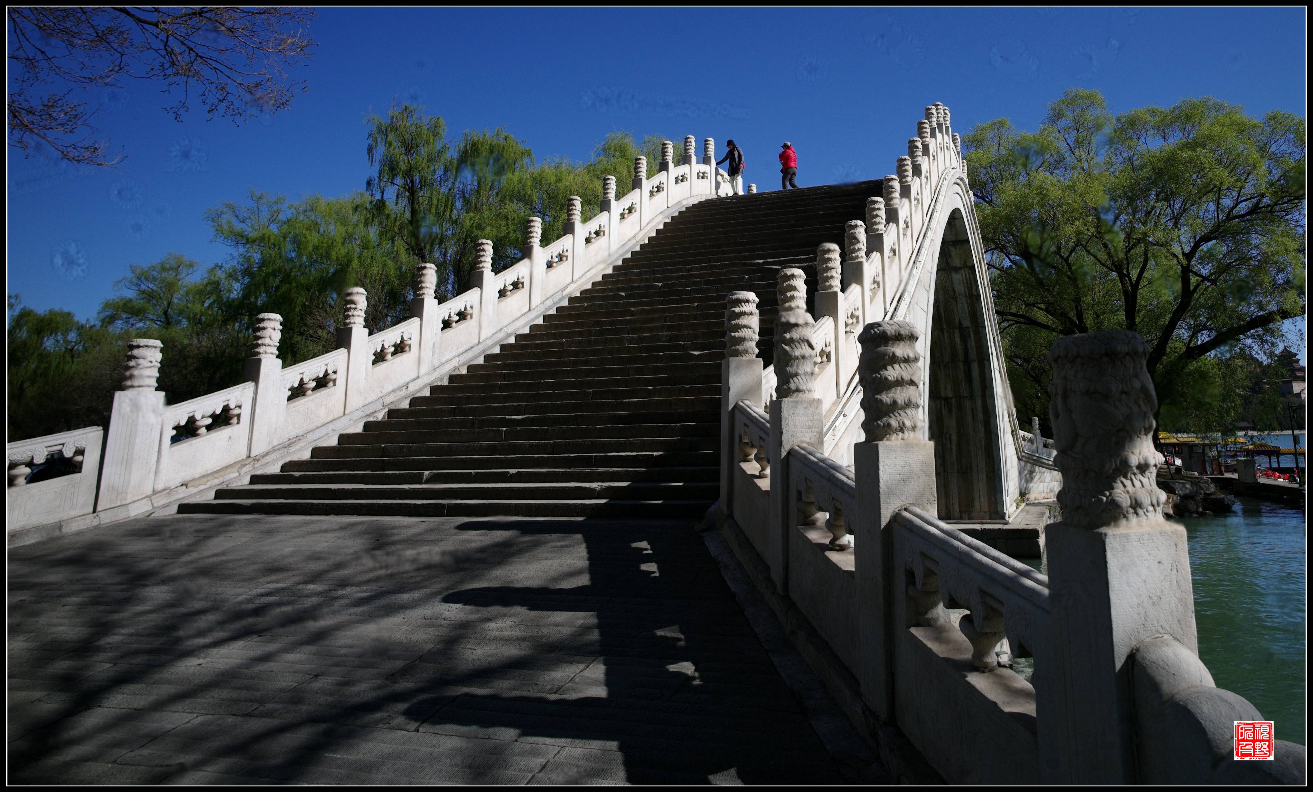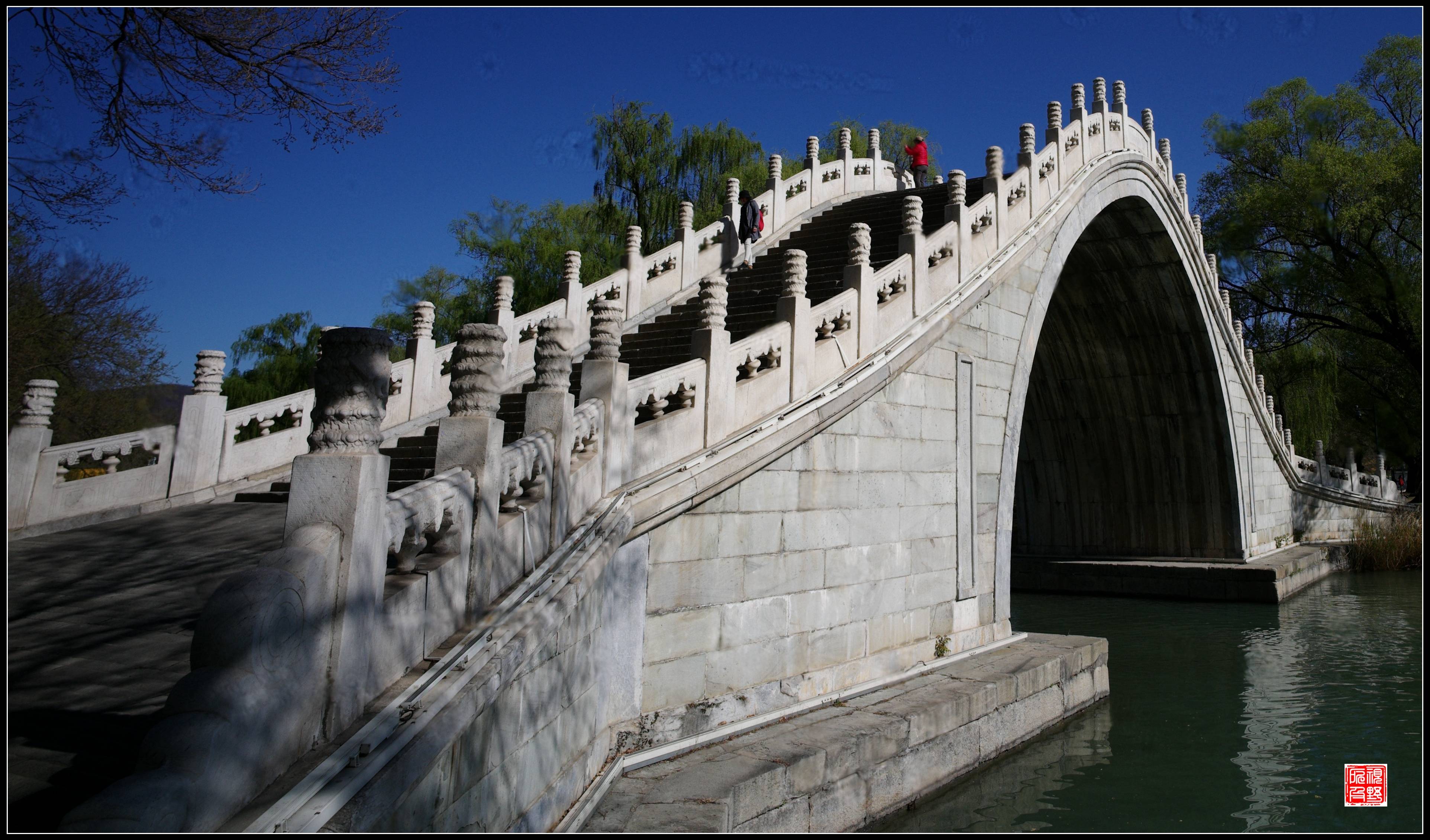 颐和园玉带桥在西堤六桥中是最引人注目的一座,为清乾隆时建造,距今已有两百多年的历史。