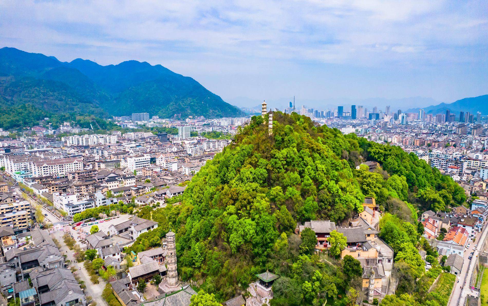 俯瞰巾山高耸于台州府城之上,山中林木幽幽,山顶双塔伫立,在悠悠岁月中默默守护着古城。(更多精彩内容,敬请关注/ 落榜进士)