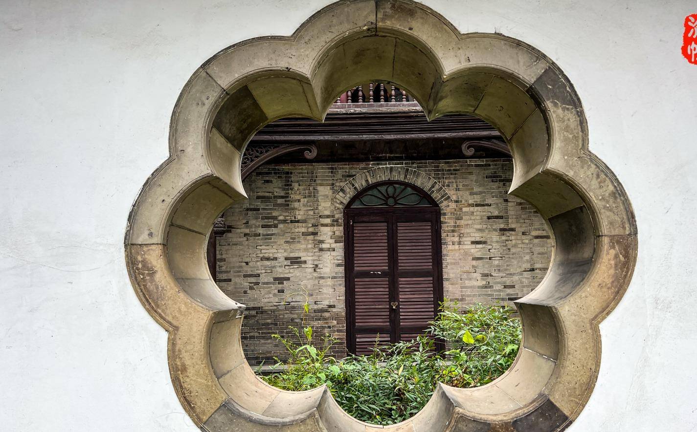在回廊的东、南两面,有很多形态各异的窗户,有折扇形、花瓶形、梅花形、海棠形等,它们形态各异。从窗中向外看,每扇窗如同一个画框,从不同角度来观赏何园的美景,绕廊赏景,步移景异,是园林窗洞中罕见的极品,所以被专家们誉为“天下第一窗”。