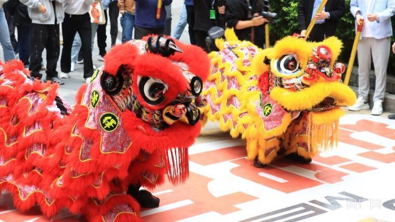 鸣锣舞狮庆祝开街(央广网发 彭鸿鑫摄)