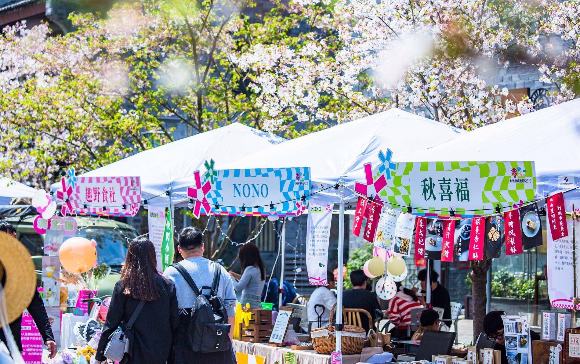 2023年的台州府城樱花纪有些特别,除了年年花开的樱,还多了一份属于人间的烟火气——樱花市集。