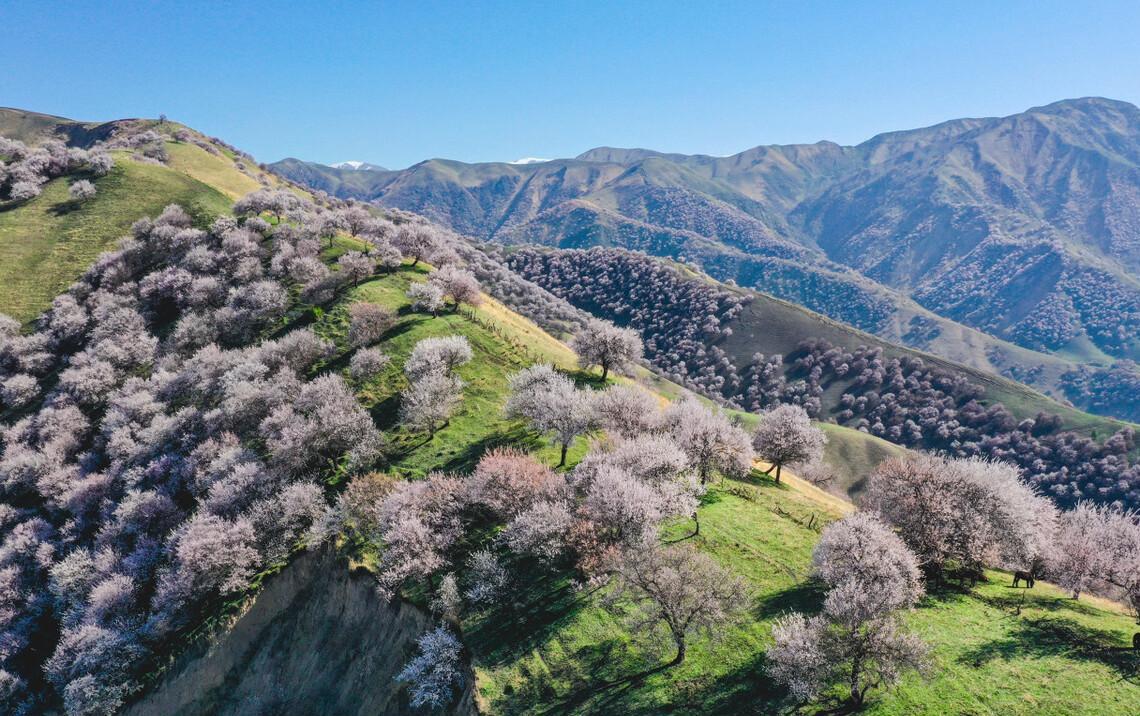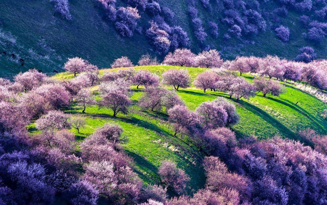 四月去新疆看一场的杏花海,这里有着中世纪遗留最大的原始野杏林,一簇一簇的杏花磅礴绽放,连绵成片,三万多亩的粉色花海,随着山坡起伏,线条优美,美得惊艳全国!当然除了赏梦幻浪漫的杏花,四月那拉提的野百合也开了,春日新疆的风光也太美了!