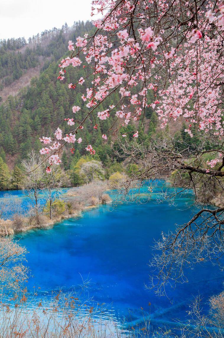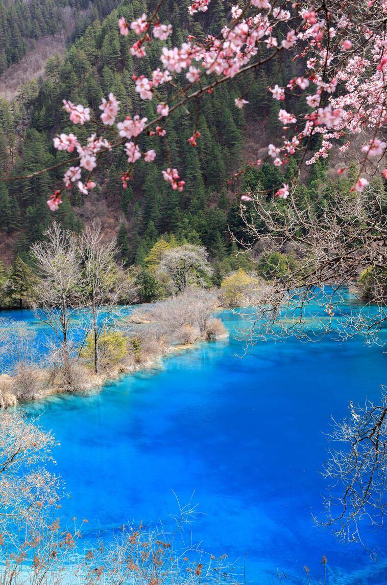 四月走进九寨沟,共赴一场春日之约。在这里可以看到各种清澈碧绿的海子,发着新嫩绿新芽的森林草甸,还有迎风绽放的山花。当漫山遍野的桃花,遇上闻名天下的秀水,透露出一种震撼心灵的美,在春光明媚的四月一定不要错过九寨沟的桃花盛宴!