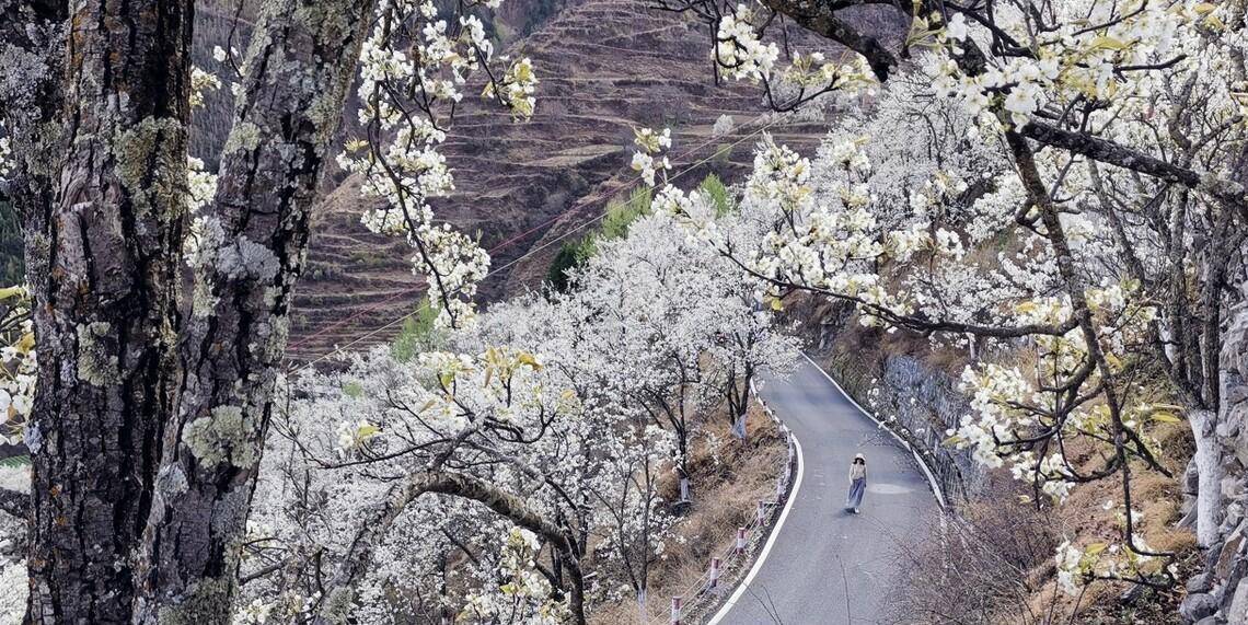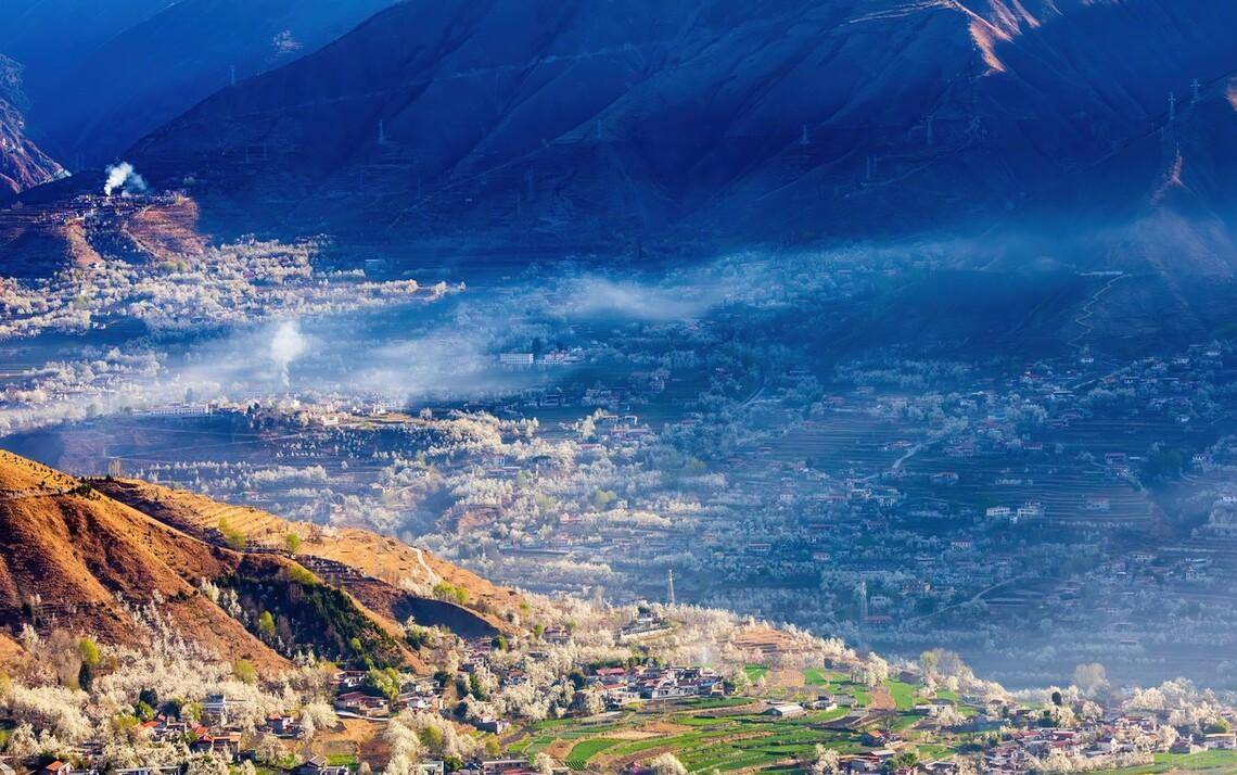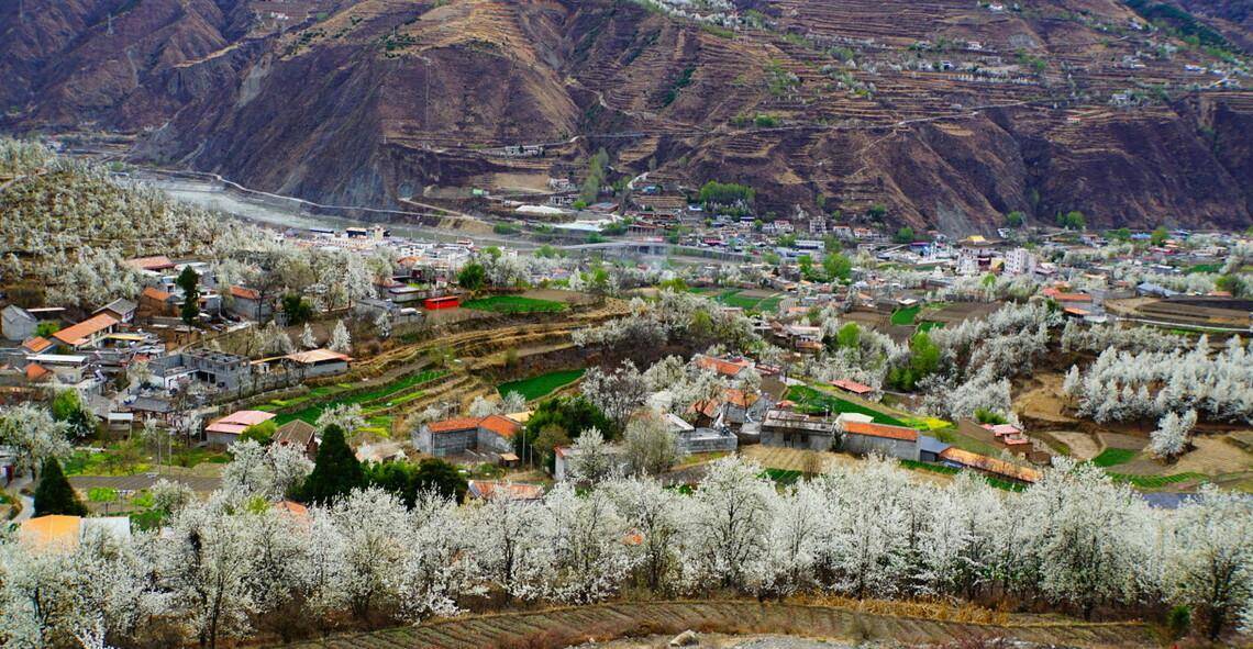 梨花处处有,我独赞金川。在这里可以看到漫山遍野的梨花,与远处错落的民居,构成一幅绝美的春日画卷。如果有时间,可以在金川的藏寨里悠闲的小住两天,赏花,安静淡然的生活,让人很舒适。