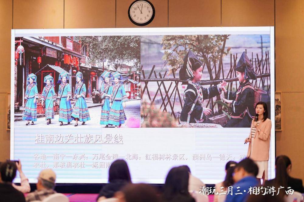 当天,对接会还围绕“潮玩三月三 相约游广西”主题,推出了中越边关探秘之旅、世界寿乡康养之旅、桂林山水恋歌之旅、网红民宿之旅、壮乡美食之旅、浪漫北部湾之旅、广西民族风情之旅等线路产品。