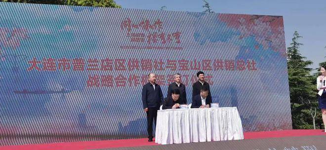 4月8日,活动开幕式在顾村公园森林休闲园的大草坪上举行。在别具地域风情的现场歌舞表演下,辽宁省大连市普兰店区供销社与宝山区供销总社签订战略合作框架协议,未来将进一步打响区域品牌文化,推动实现资源互享,合作共赢。