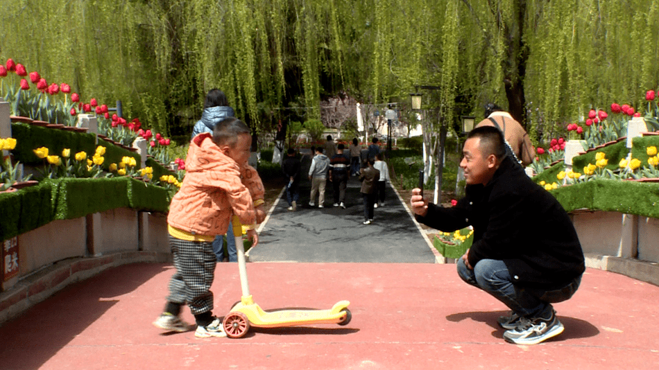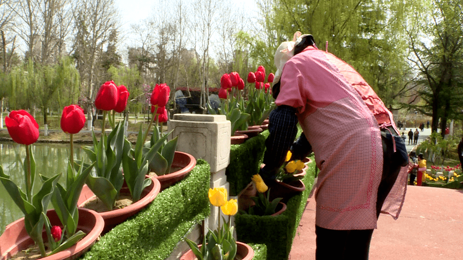 红色、黄色、粉色、混色……不同种类的郁金香高低错落,目之所及皆是一片姹紫嫣红的浓浓春色,让人目不暇接。来公园锻炼身体、踏青游玩的市民已经被这一幅幅生动的美景深深吸引,徜徉在浪漫花海中拍照、观赏。市民史凤明高兴地说:“今天我和亲朋来到马跑泉公园,看见这里的郁金香开得真的漂亮,我要好好欣赏一下!”