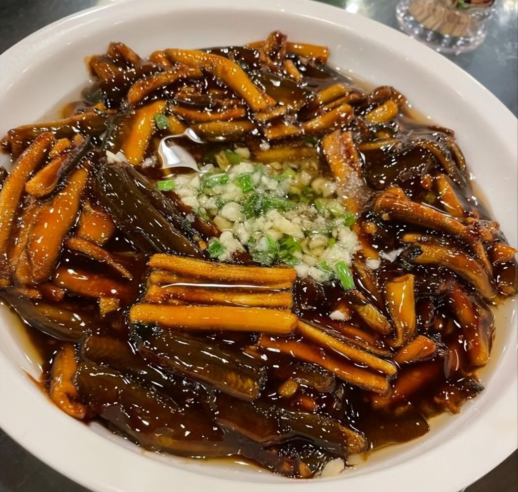 这四道菜分别是松子牛肉炒年糕、什锦面筋、响油鳝糊和香菜拌腰片。当东北朋友看到这四道菜,直接傻眼了,还以为自己走错了地方,到了东北菜馆。原来这家店的菜量很大,而且味道很重口,不仅有甜味,还有酸味,浓油赤酱吃起来很顺口,油也很大,不配几碗米饭根本吃不下来。
