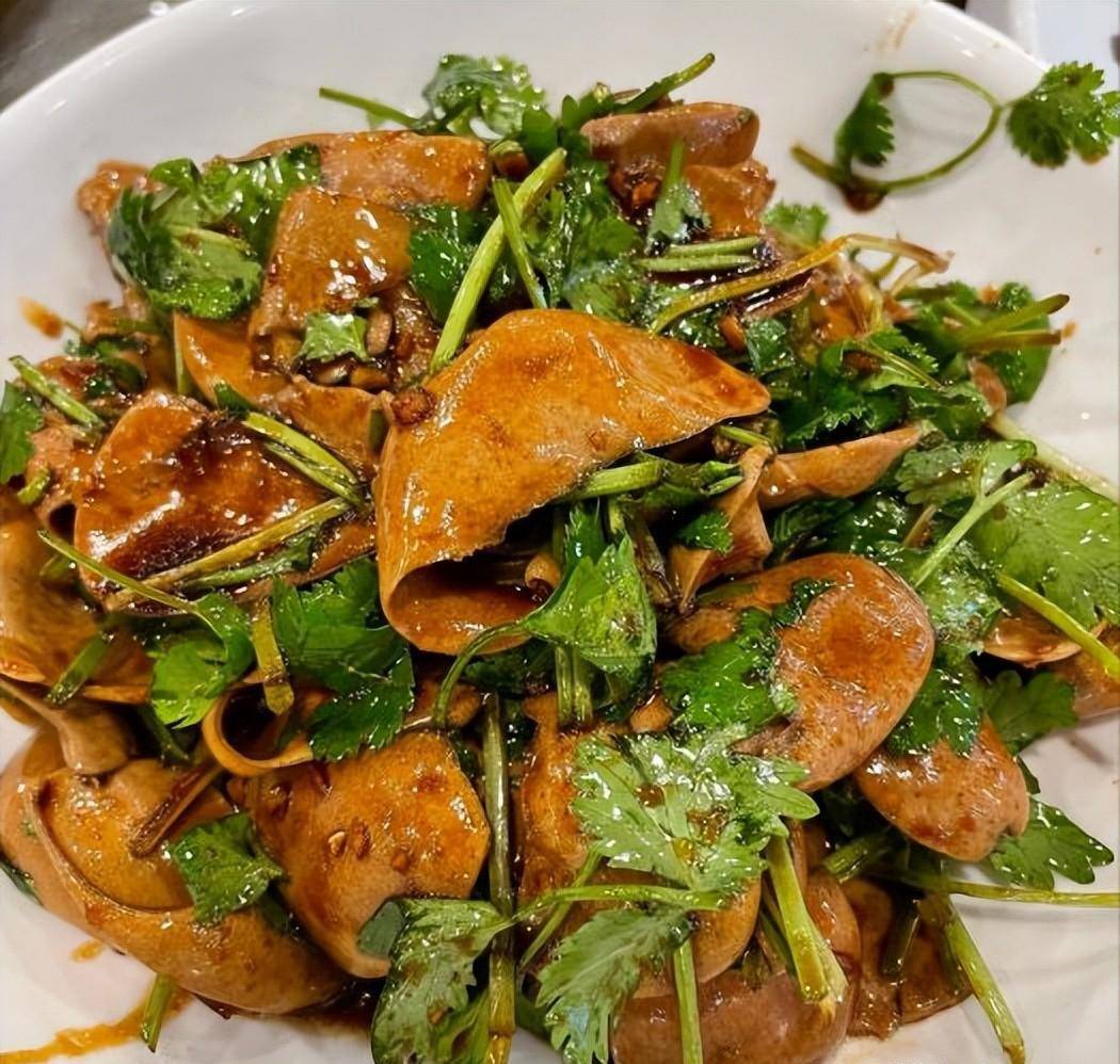 响油鳝糊满满一大盘都是鳝肉,鳝鱼的新鲜度很好,吃起来嫩滑爽口,油重胡椒味浓,没有其他异味,肉质很鲜美。还有这个香菜拌腰片,也是以甜味为主,而且腰片爽脆没有异味,配上香菜,中和一下油腻,吃起来很清爽。嫩滑的腰片伴着香菜的独特香味入口,爽脆可口,连吃不吃腰片的人都能吃个精光。