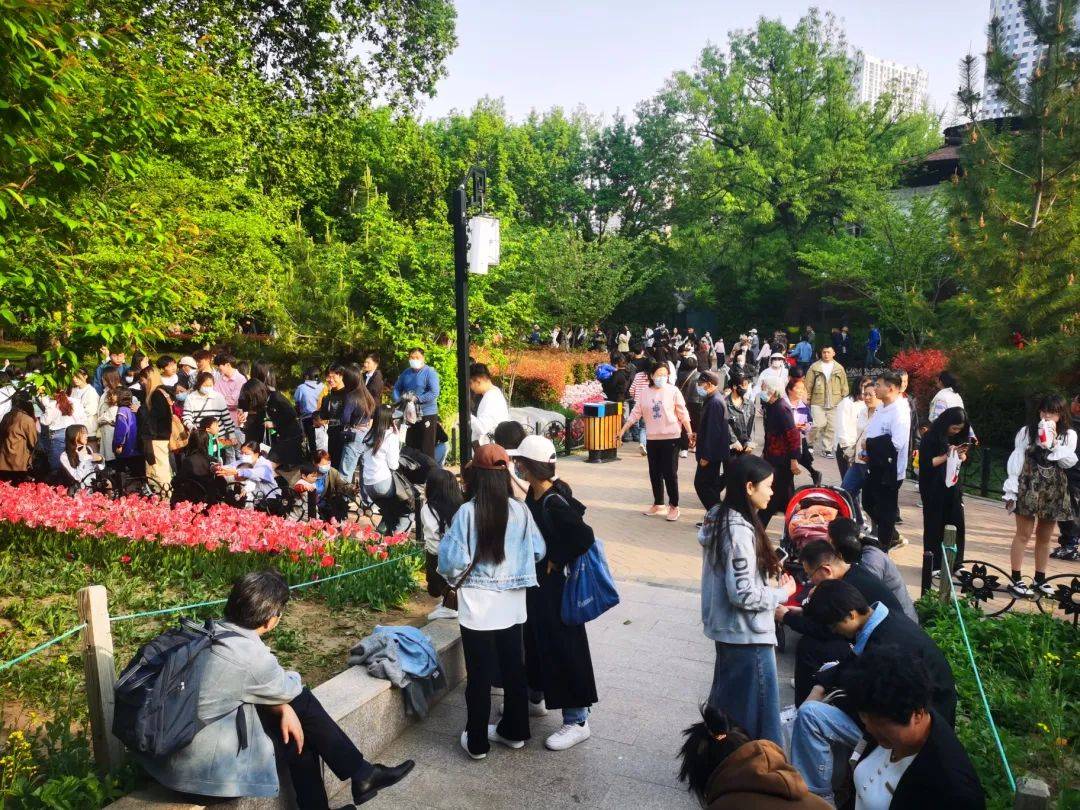 原标题:气温回升春光正好,郑州人民公园内游人如织赏花过周末