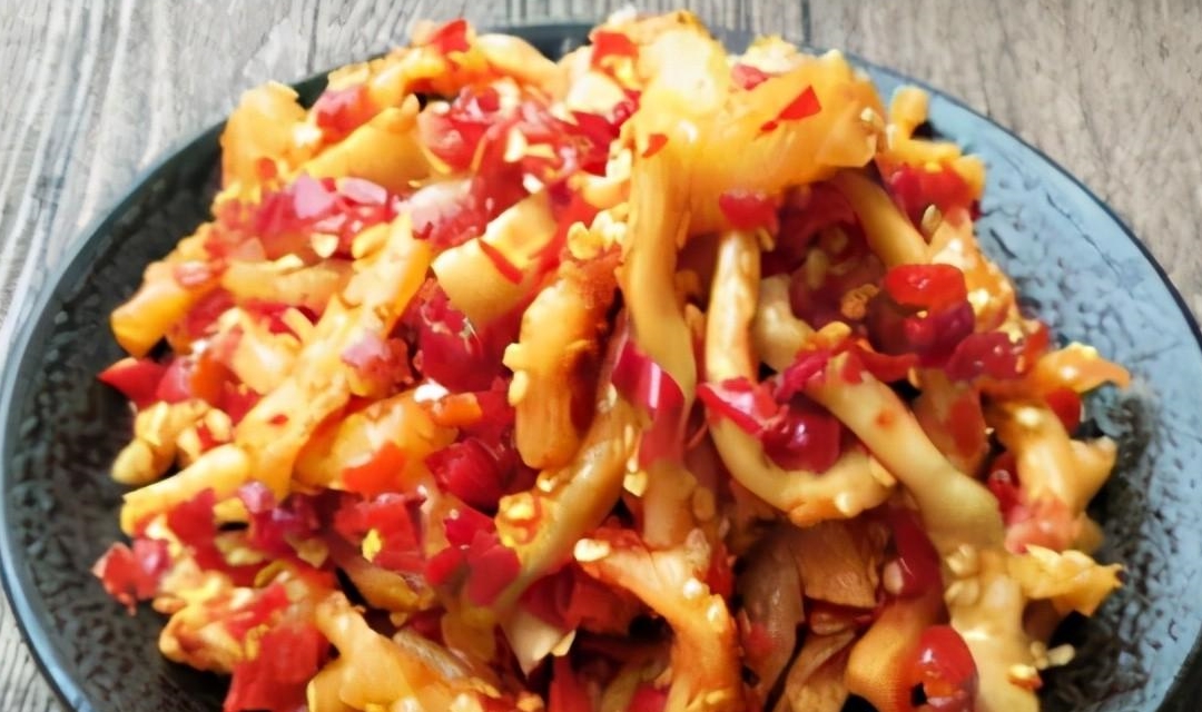 第二种,就直接加剁辣椒,加少许盐,鸡精,也可以放点冰糖,揉均匀,可以直接吃。