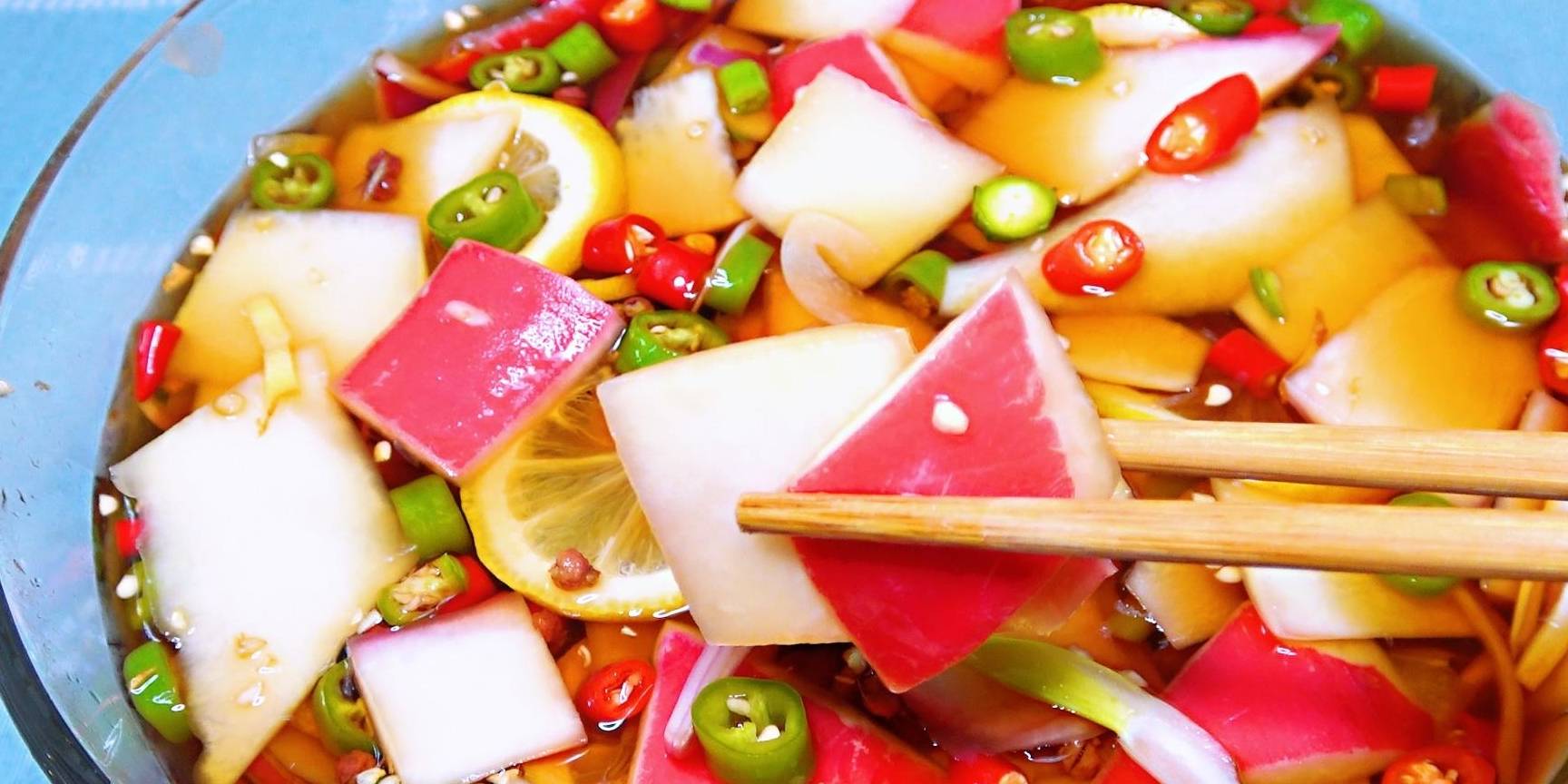 萝卜是冬天的应季蔬菜,虽然现在有了大棚,一年四季都能吃到萝卜,但是冬天的萝卜不仅便宜,而且汁多香甜,比大棚里的萝卜好吃很多。很多朋友吃萝卜的时候都喜欢削皮。有的朋友会把萝卜皮给动物吃,有的就直接扔掉。四川人就喜欢把萝卜皮扔进泡菜坛子,一两天就能吃,用来配粥或者做开胃小菜简直就是一绝。