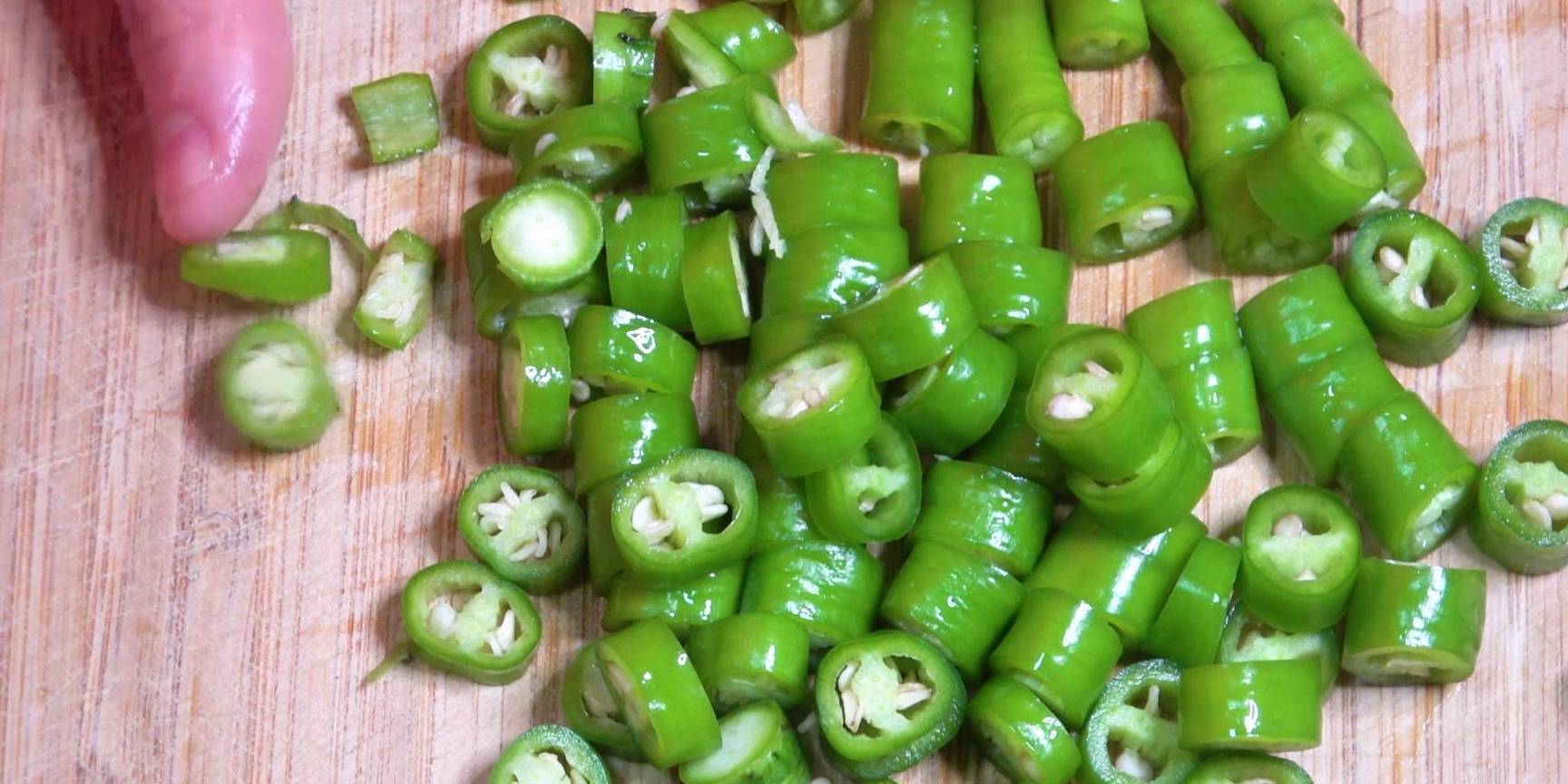 腌萝卜皮的时候我们来准备辅料。几颗大蒜切成薄片,一点生姜切丝备用,几根二荆条切圈备用,加二荆条主要是增加辣椒的鲜香味,这个二荆条辣椒并不会很辣。一些小米辣切圈备用,这个小米辣就稍微有一点辣,不太能吃辣的可以少加一点。