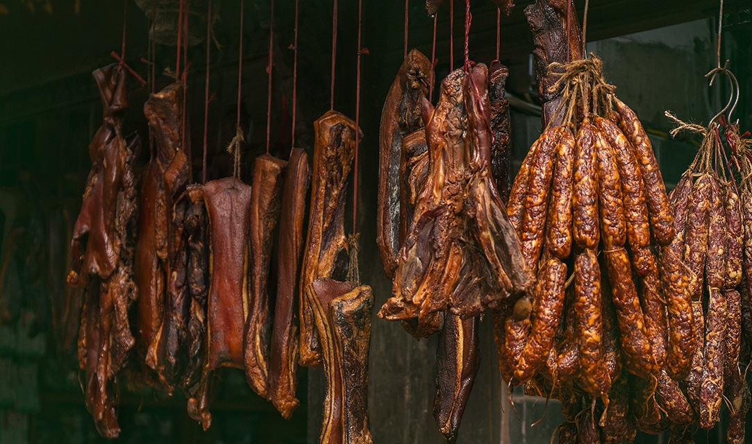 过年了,走到六安的大街小巷,你会发现门口都会挂满腊肉、腊鸭、腊鹅,腊味是六安人民过年必不可少的东西。似乎只有在大年三十即将到来的时刻,腌制满院子的腊味,才能把年味烘托出十足的氛围。所以,如果你在即将过年的时候来六安旅行,除了茶业以外,一定不要忘记六安的腊肉、腊肠哦!大白米饭里面蒸上几片腊肉,实在是香极了!六安人民都好这口。