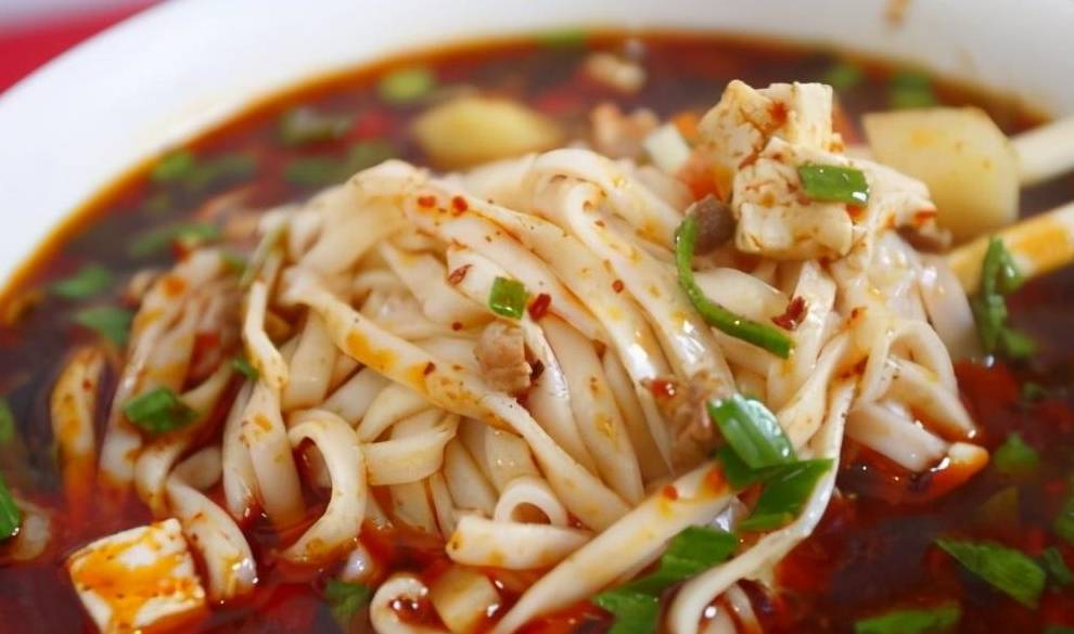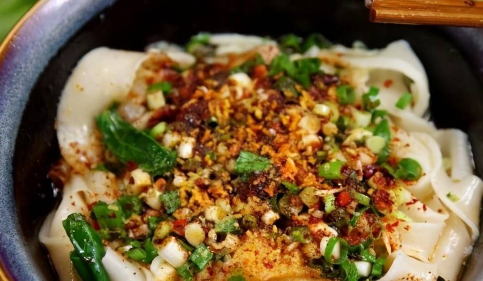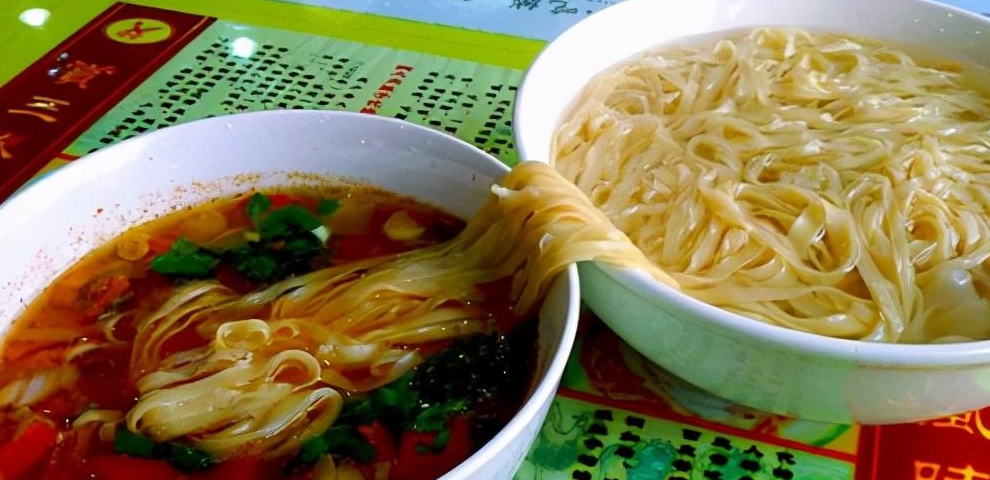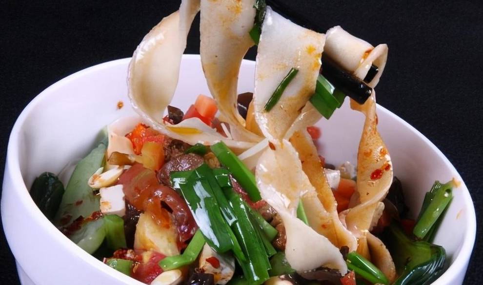 陕西蓝田裤带面,陕西八大怪之一的"面条像裤带",俗称"biang-biang"。正宗裤带面,需要用关中麦子磨成的面粉擀成,一根面条宽度可达二三寸,长度则在1米上下,厚度厚时与硬币差不多,薄时却如同蝉翼。油泼辣子biangbiang面,越吃越美赛神仙。